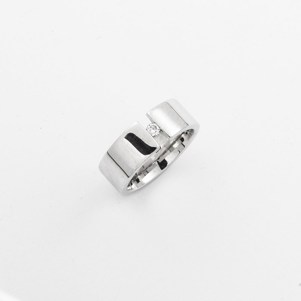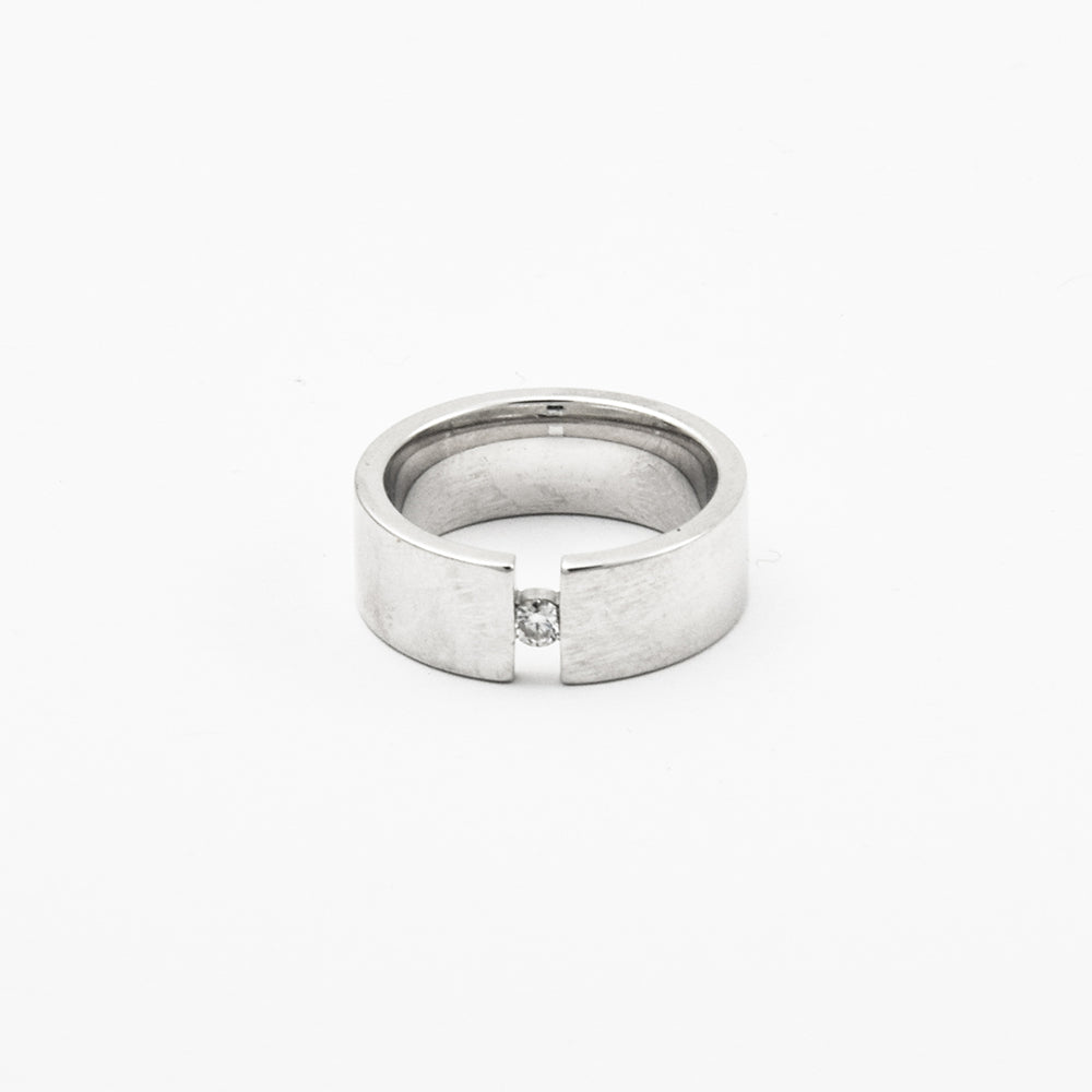 Bei dem Schmuckstück handelt es sich um einen Ring aus 585 Weißgold mit einem Brillanten von ca. 0,07 ct in der Qualität Weiß mit kleinen Einschlüssen (W/si).