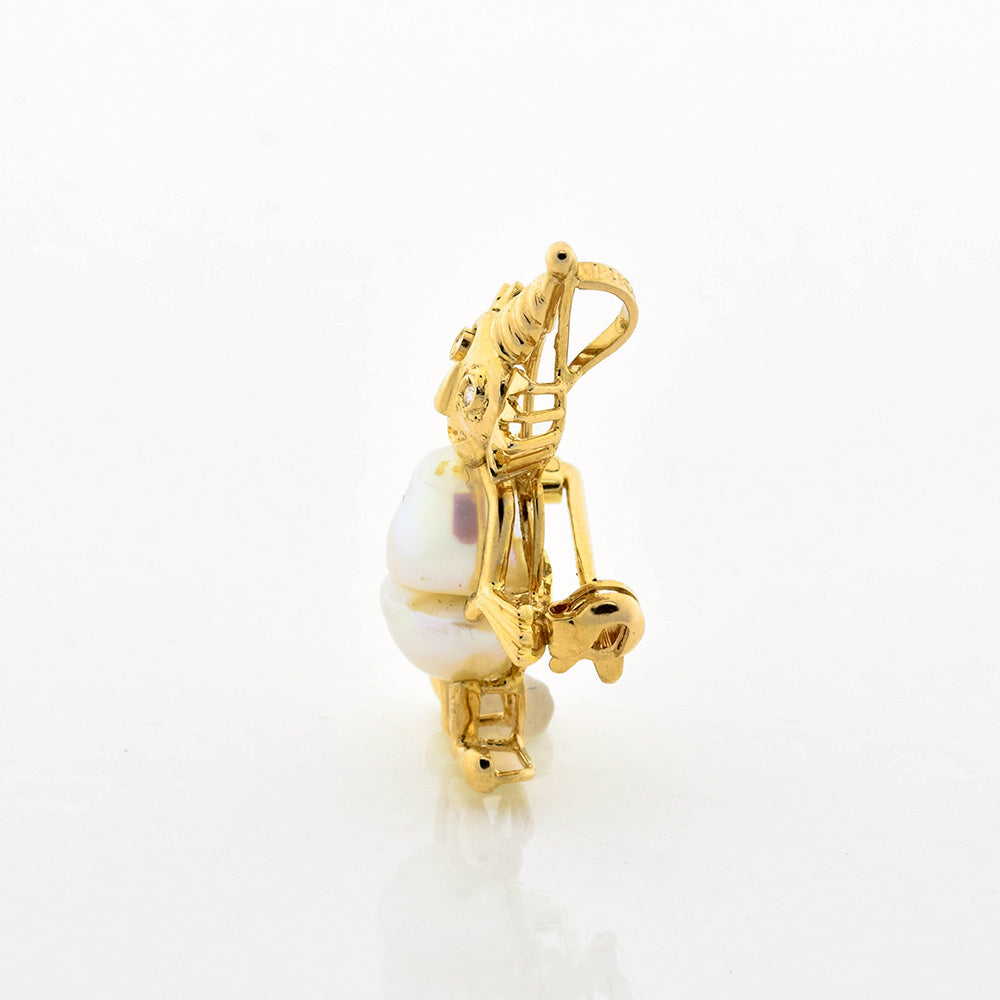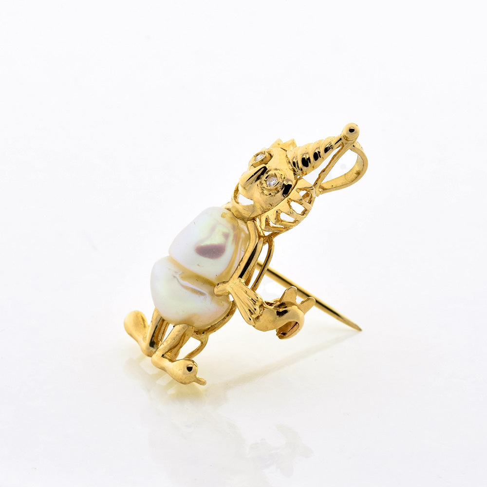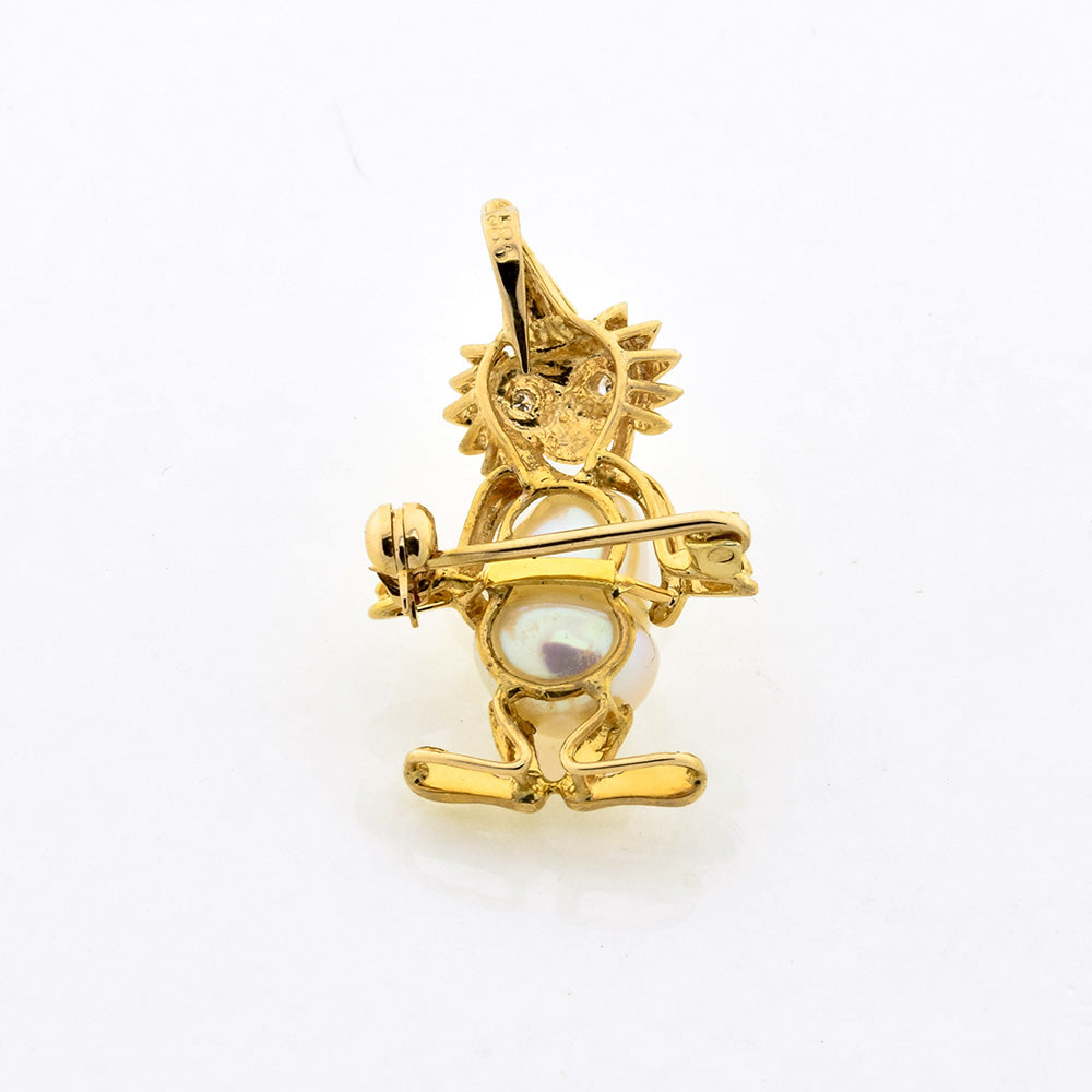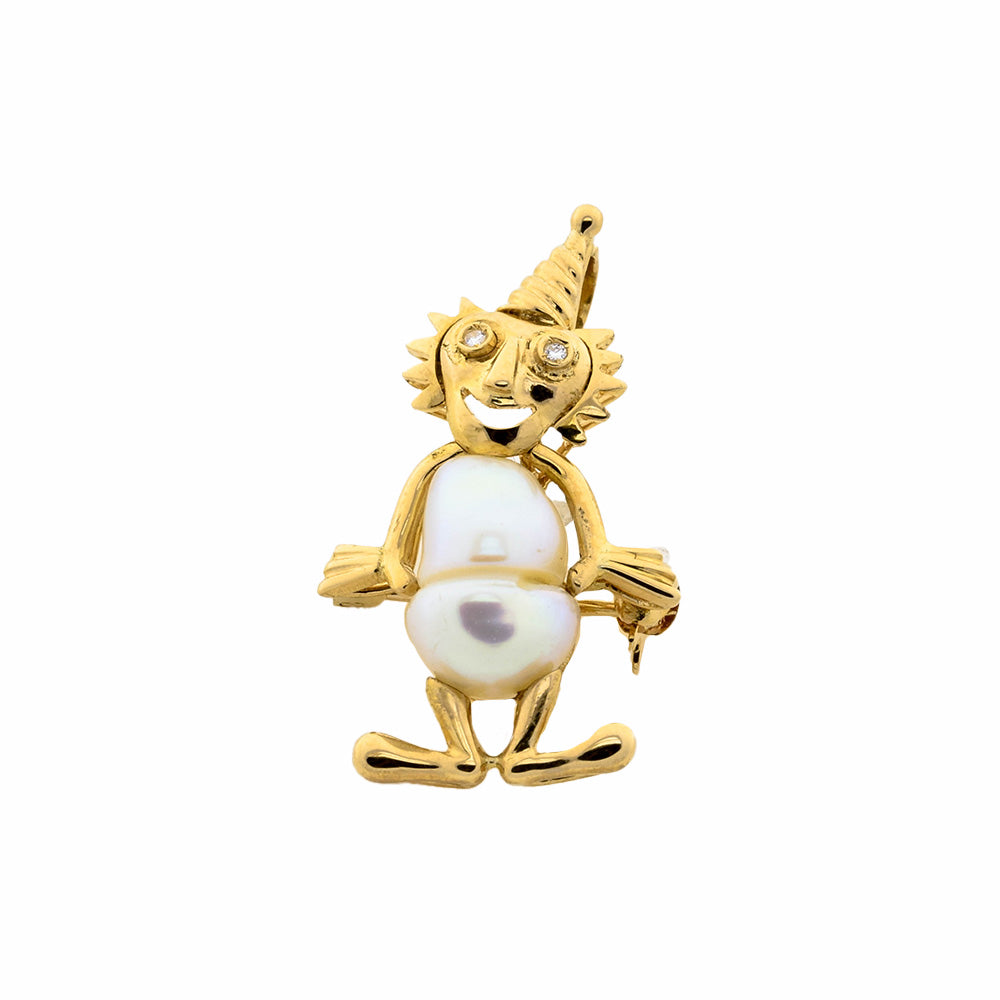 Anhänger/Brosche Harlekin aus Gelbgold mit Perle und Diamant
