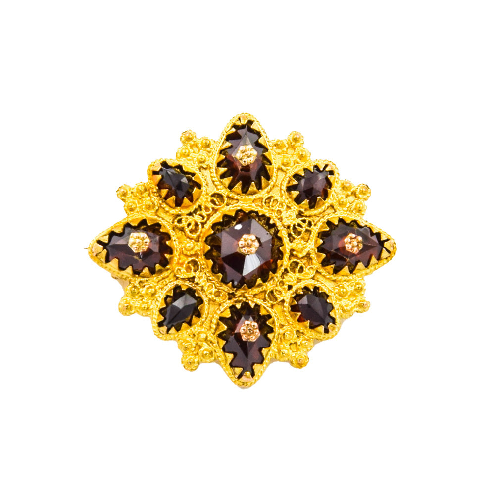 Granatbrosche aus Gelbgold
