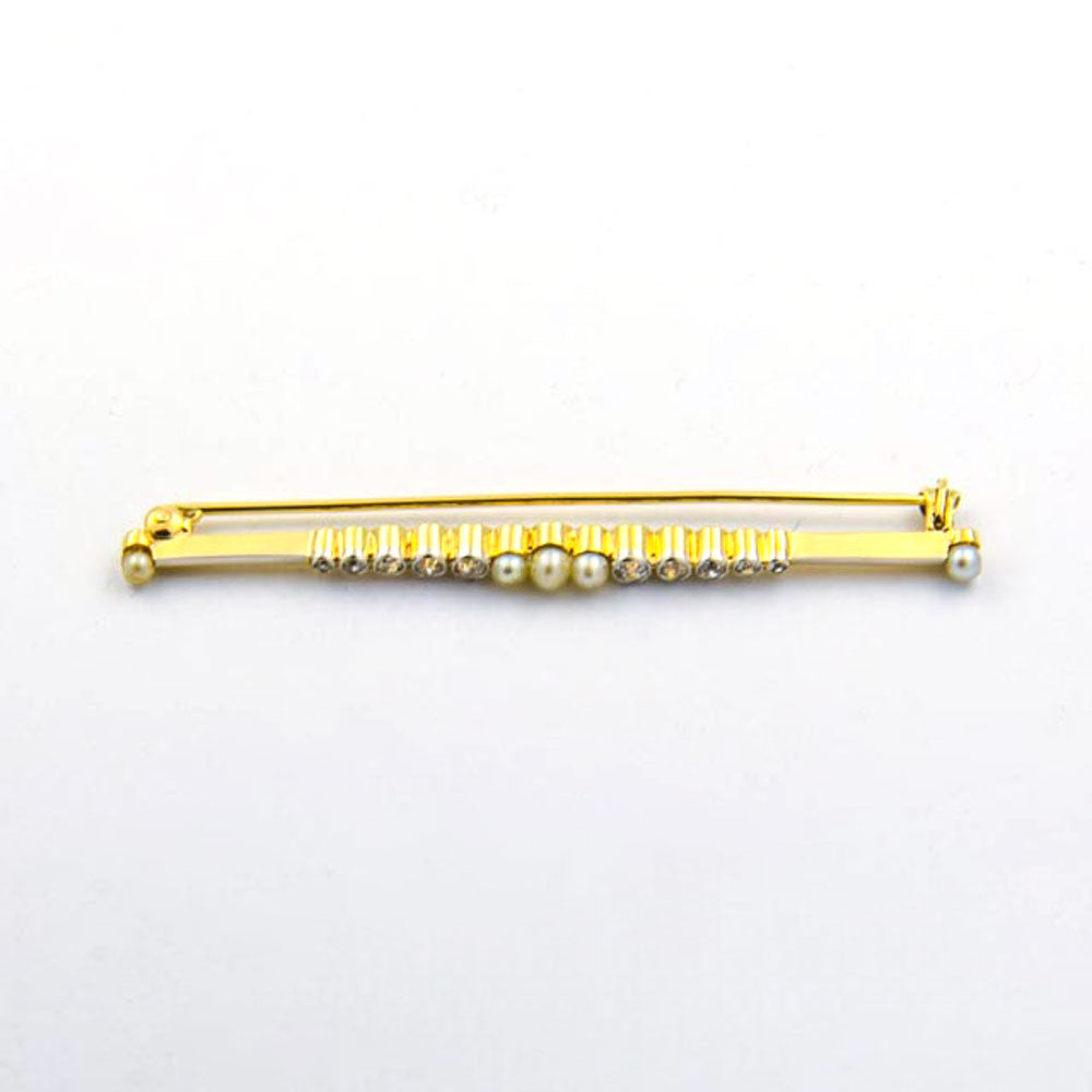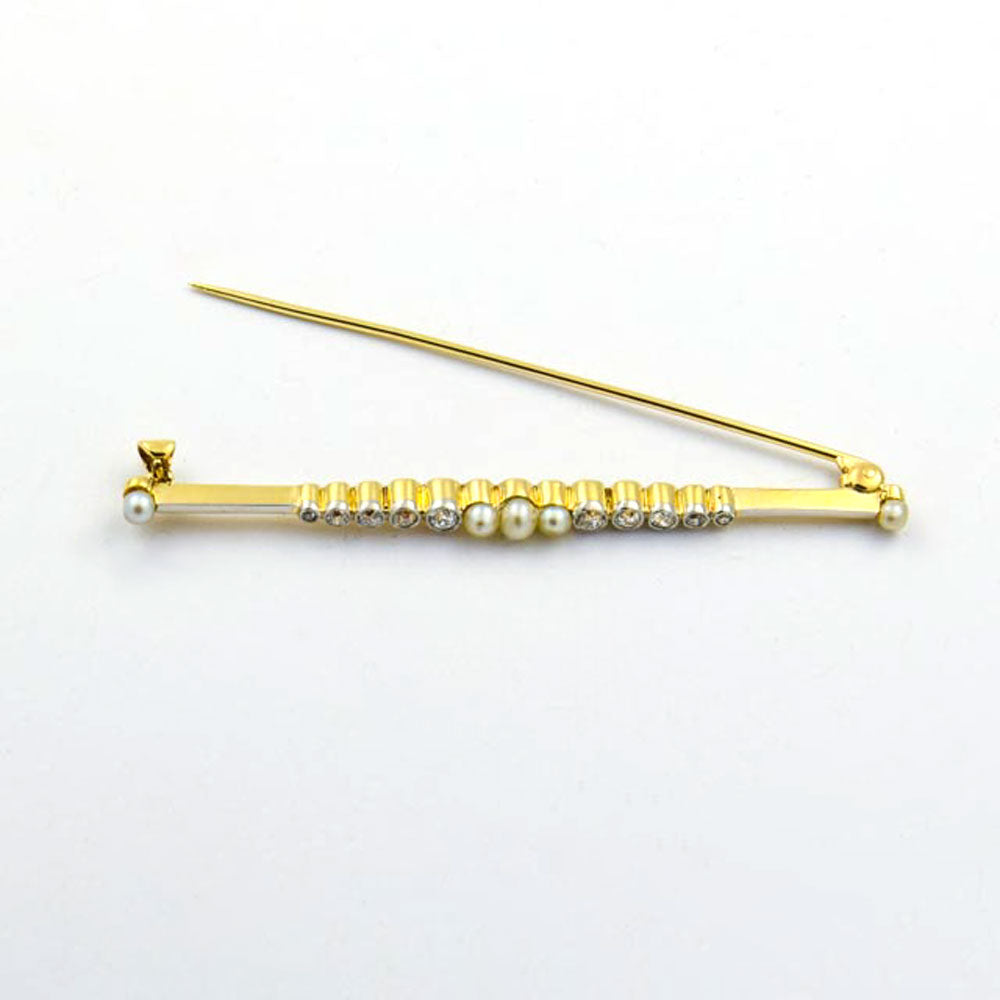 Art Déco Perlenbrosche aus Gelbgold/Platin mit Brillant