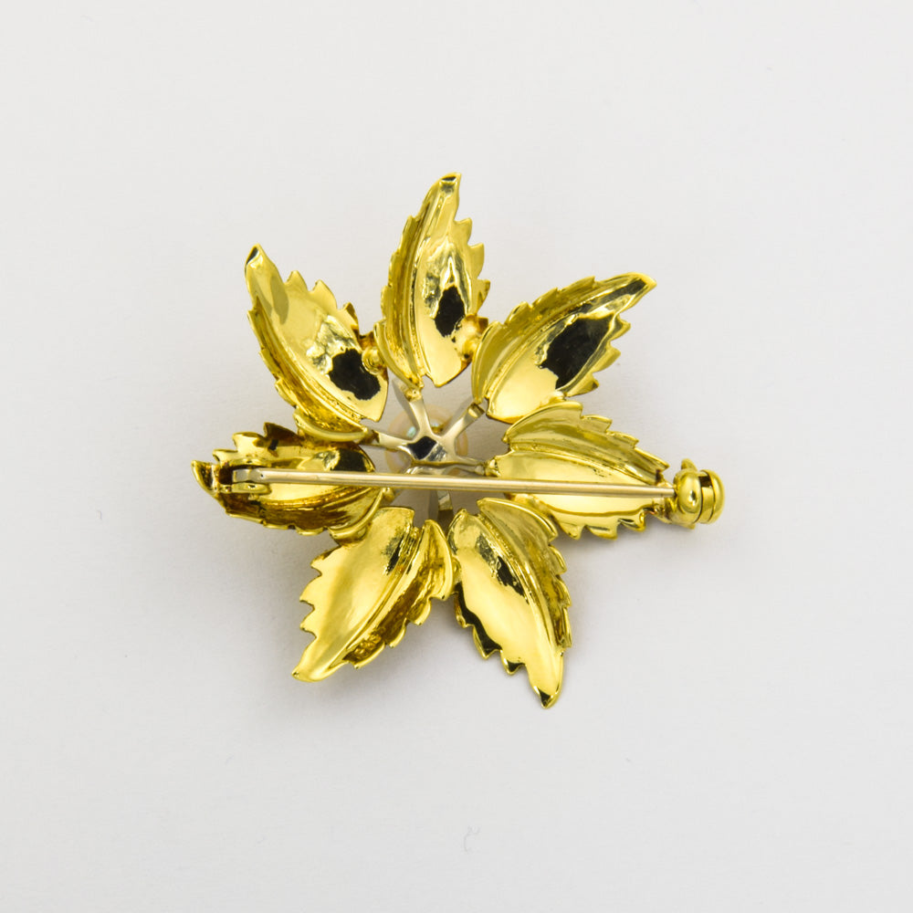 Perlenbrosche aus Gelb- und Weißgold