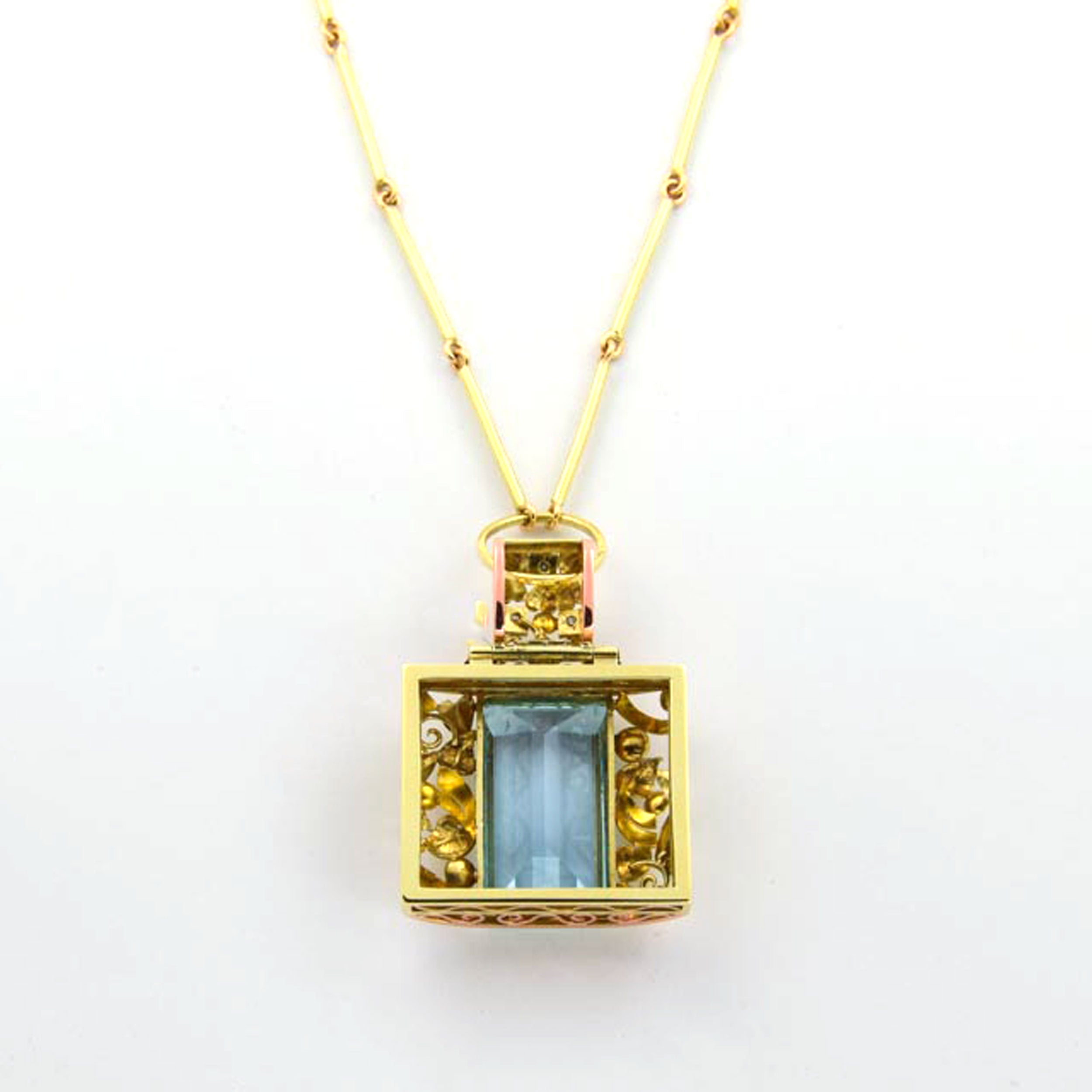 Collier aus Gelb- und Rotgold mit Aquamarin und Brillant, Handarbeit