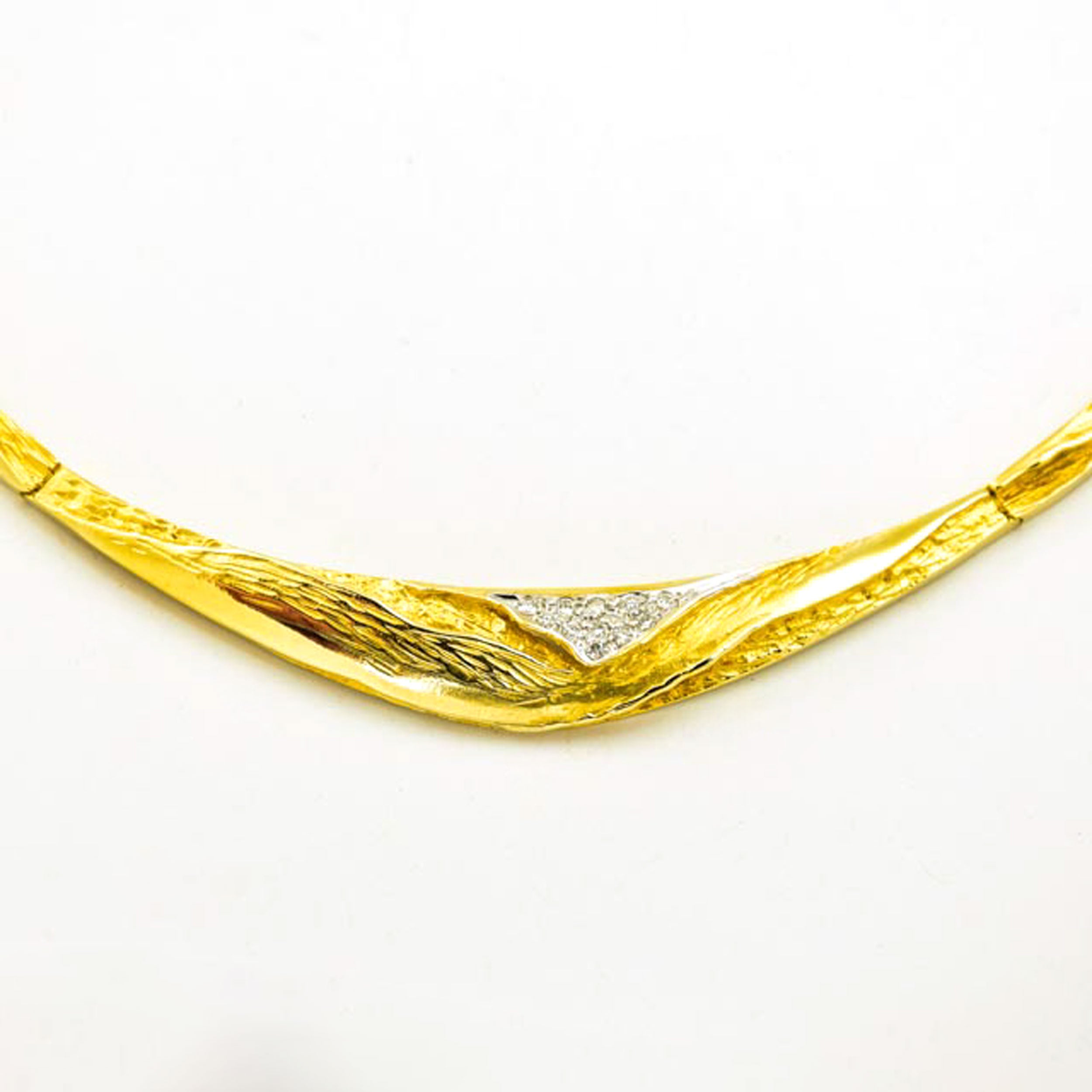 Bei dem Schmuckstück handelt es sich um ein Collier aus 585 Gelb- und Weißgold mit elf Brillanten von zusammen ca. 0,15 ct in der Qualität Weiß mit kleinen Einschlüssen (W/si). Das Schmuckstück hat eine Gesamtlänge von 46 cm.