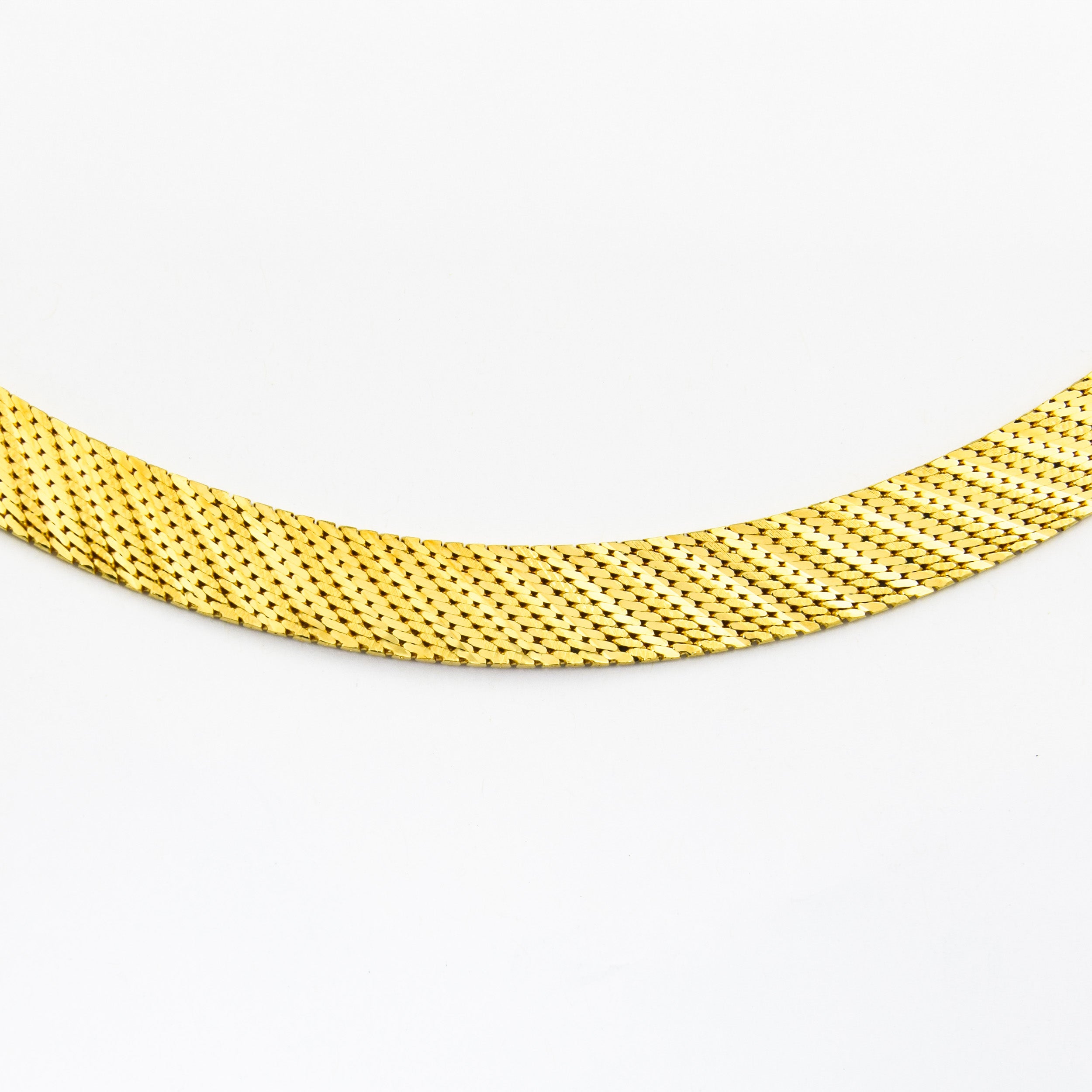 Bei dem Schmuckstück handelt es sich um ein Collier aus 585 Gelbgold. Das Schmuckstück hat eine Gesamtlänge von 45 cm.
