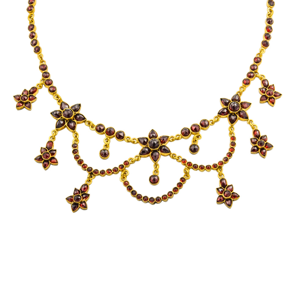Jugendstil Granatcollier aus Metall