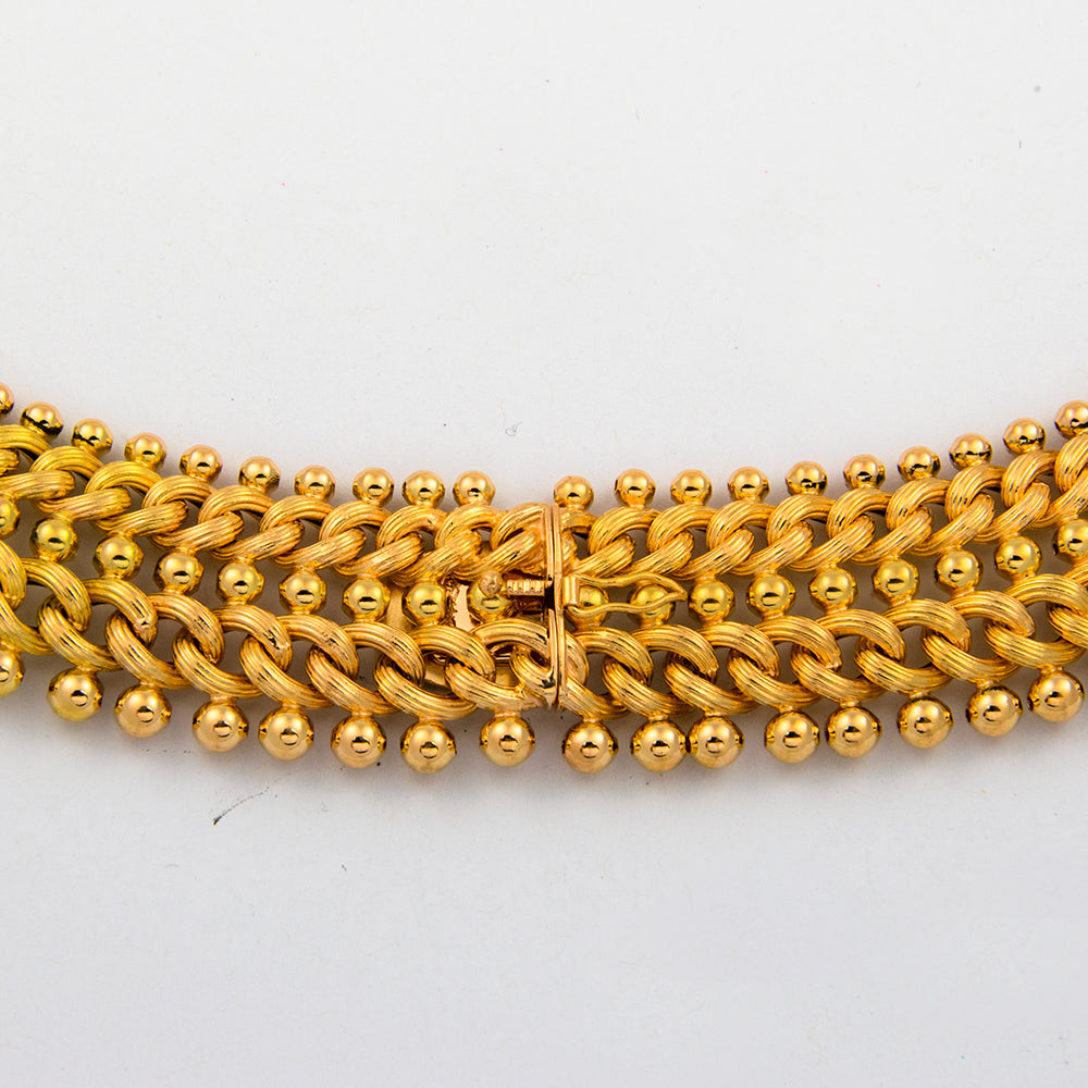 Bei dem Schmuckstück handelt es sich um ein Collier aus 750 Roségold. Das Schmuckstück hat eine Gesamtlänge von 46 cm.