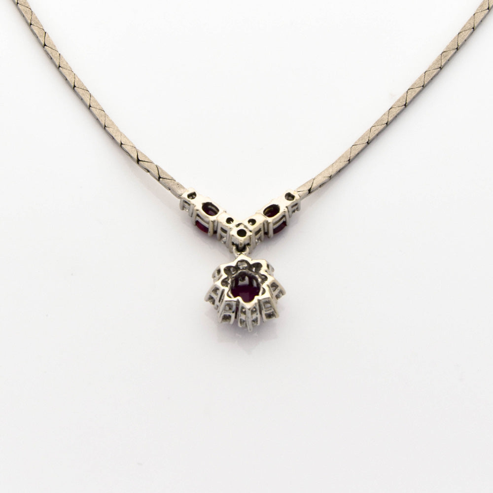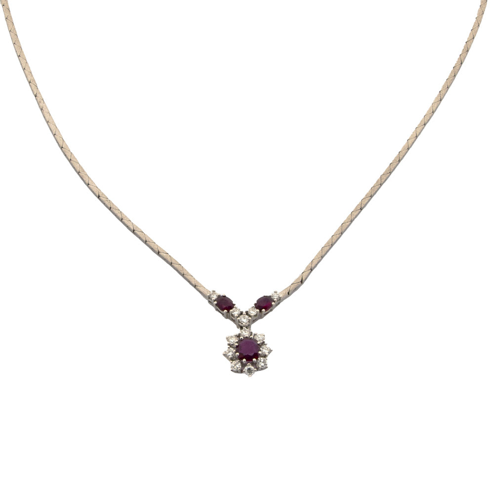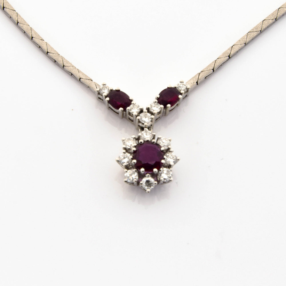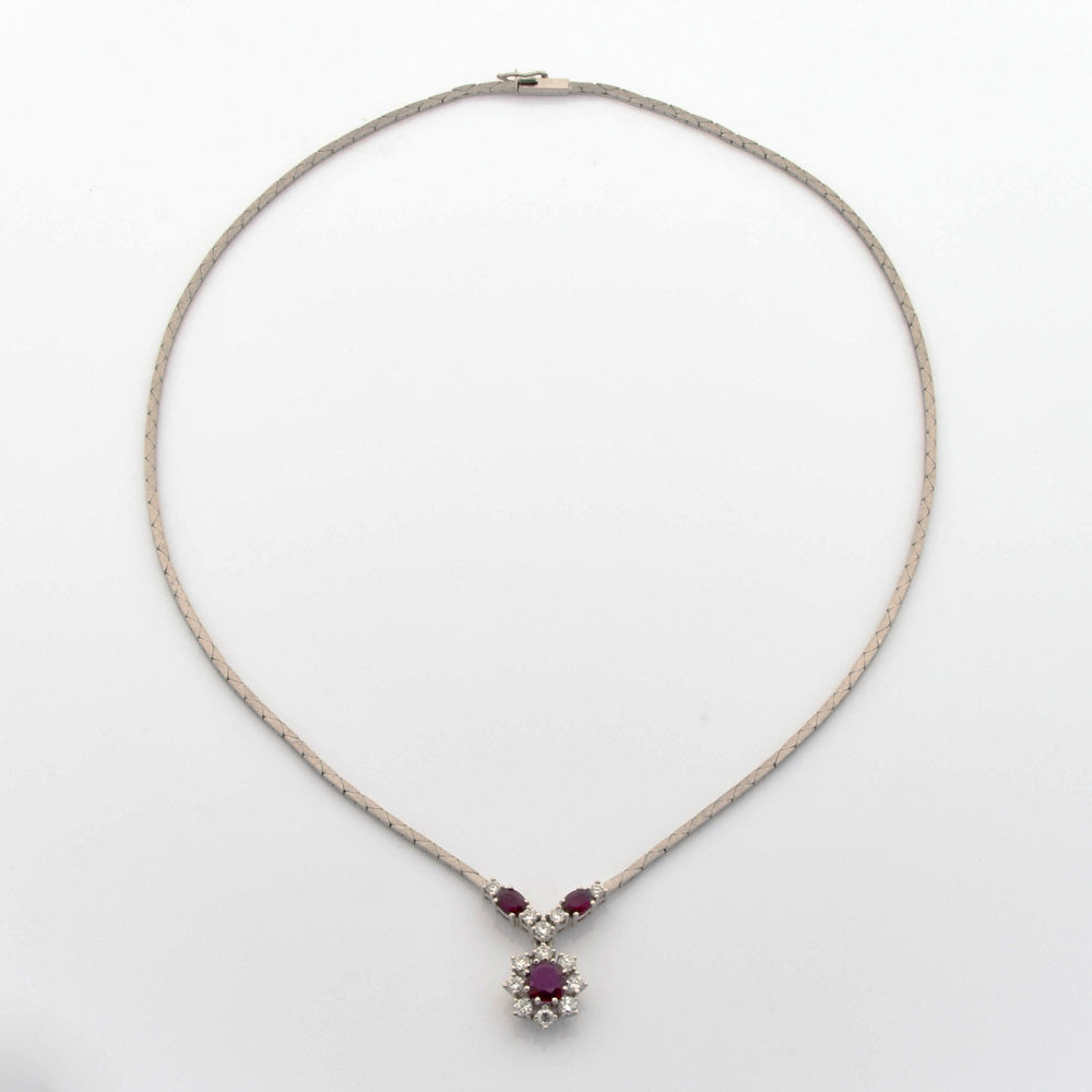 Rubincollier aus Weißgold mit Brillant