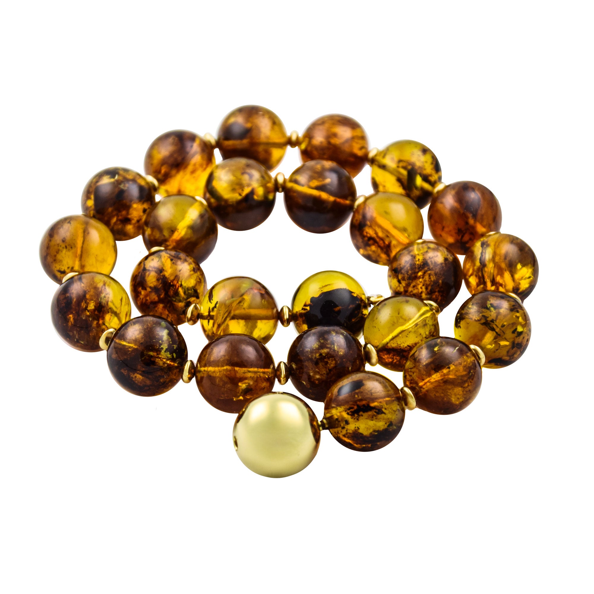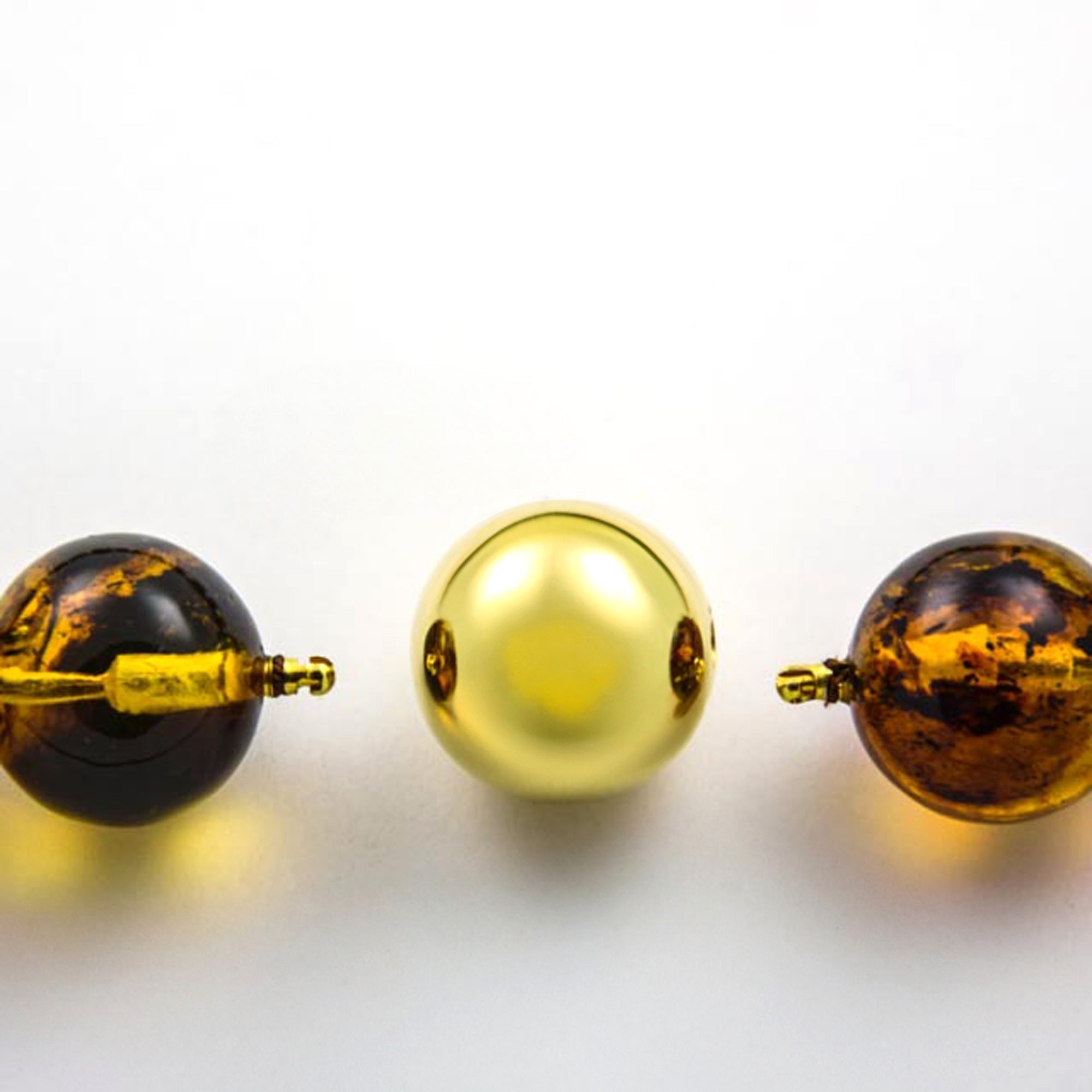 Bernsteinkette mit Schließe und Zwischenteilen aus Gelbgold