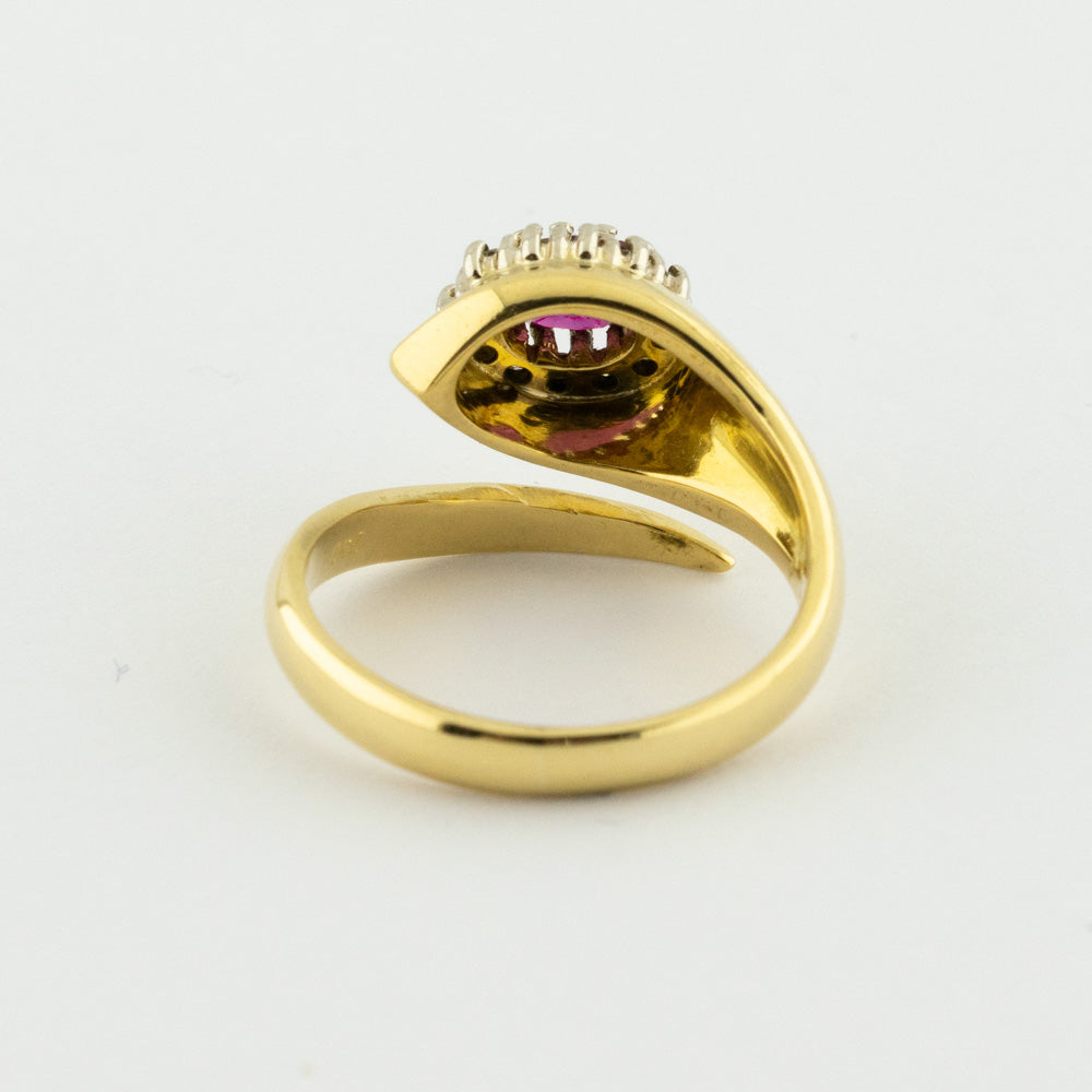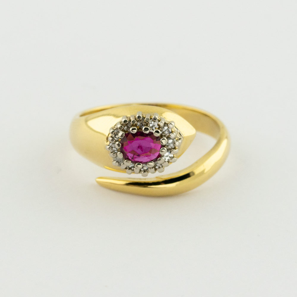 Rubinring aus Gelb- und Weißgold mit Diamant