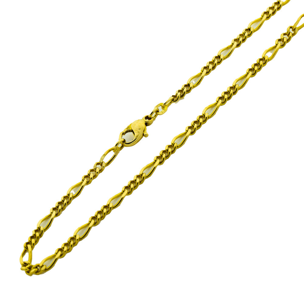 Bei dem Schmuckstück handelt es sich um eine Figarokette der Marke FBM aus 585 Gelbgold. Das Schmuckstück hat eine Gesamtlänge von 48 cm.