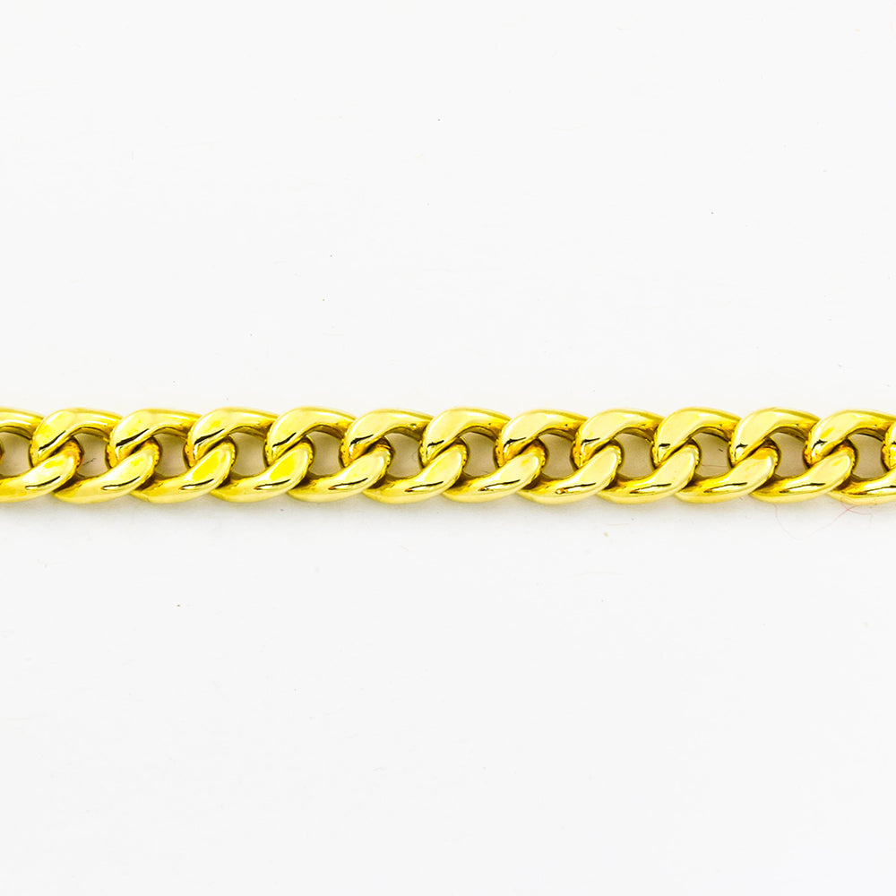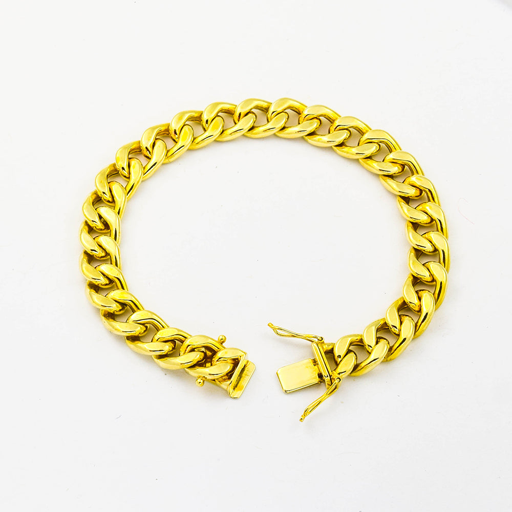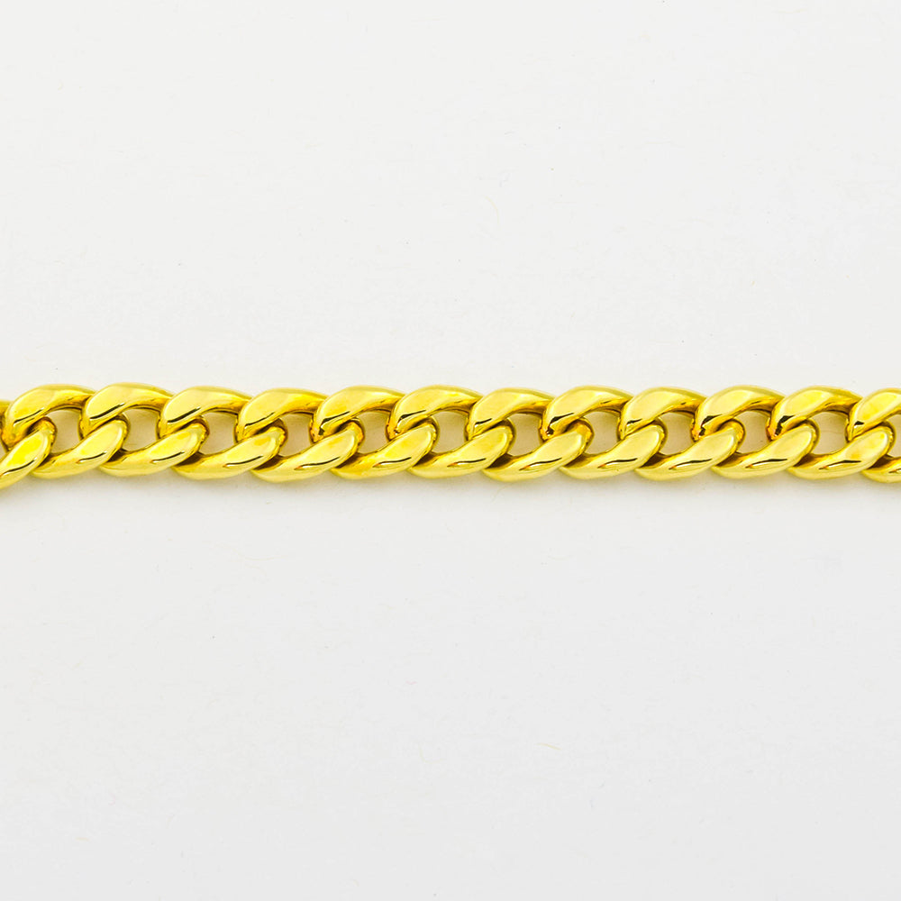 Bei dem Schmuckstück handelt es sich um ein Panzerarmband der Marke FBM aus 585 Gelbgold. Das Schmuckstück hat eine Gesamtlänge von 19 cm.