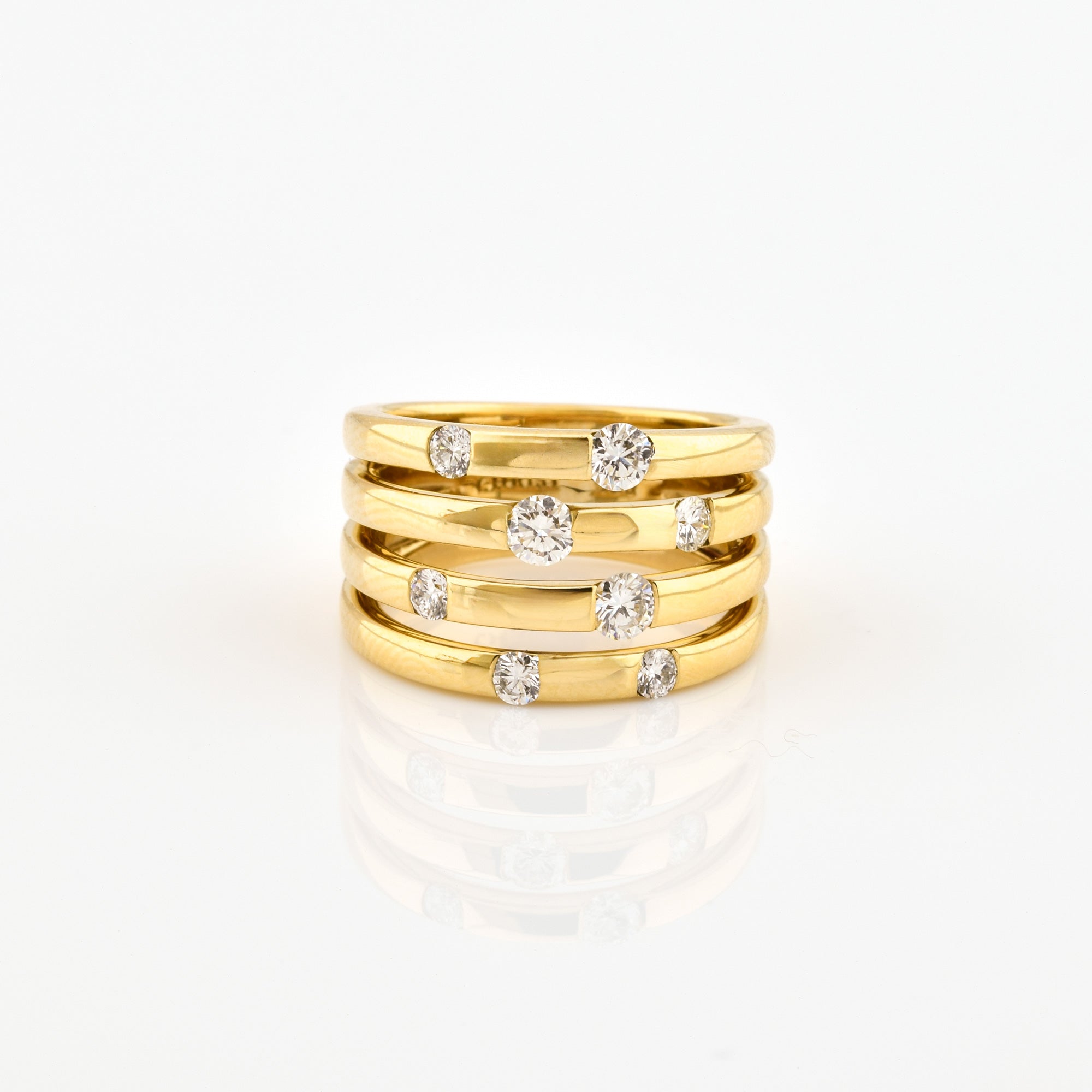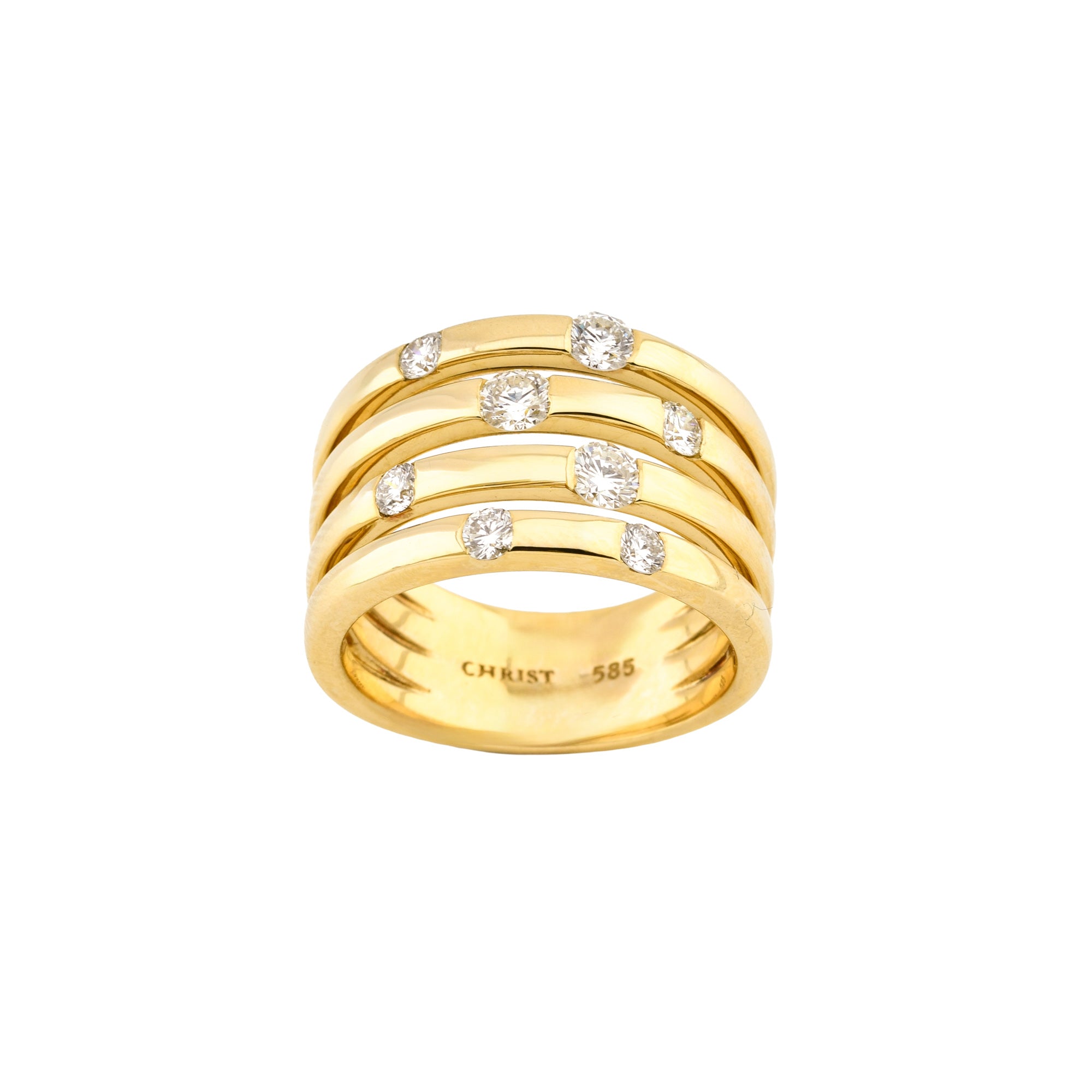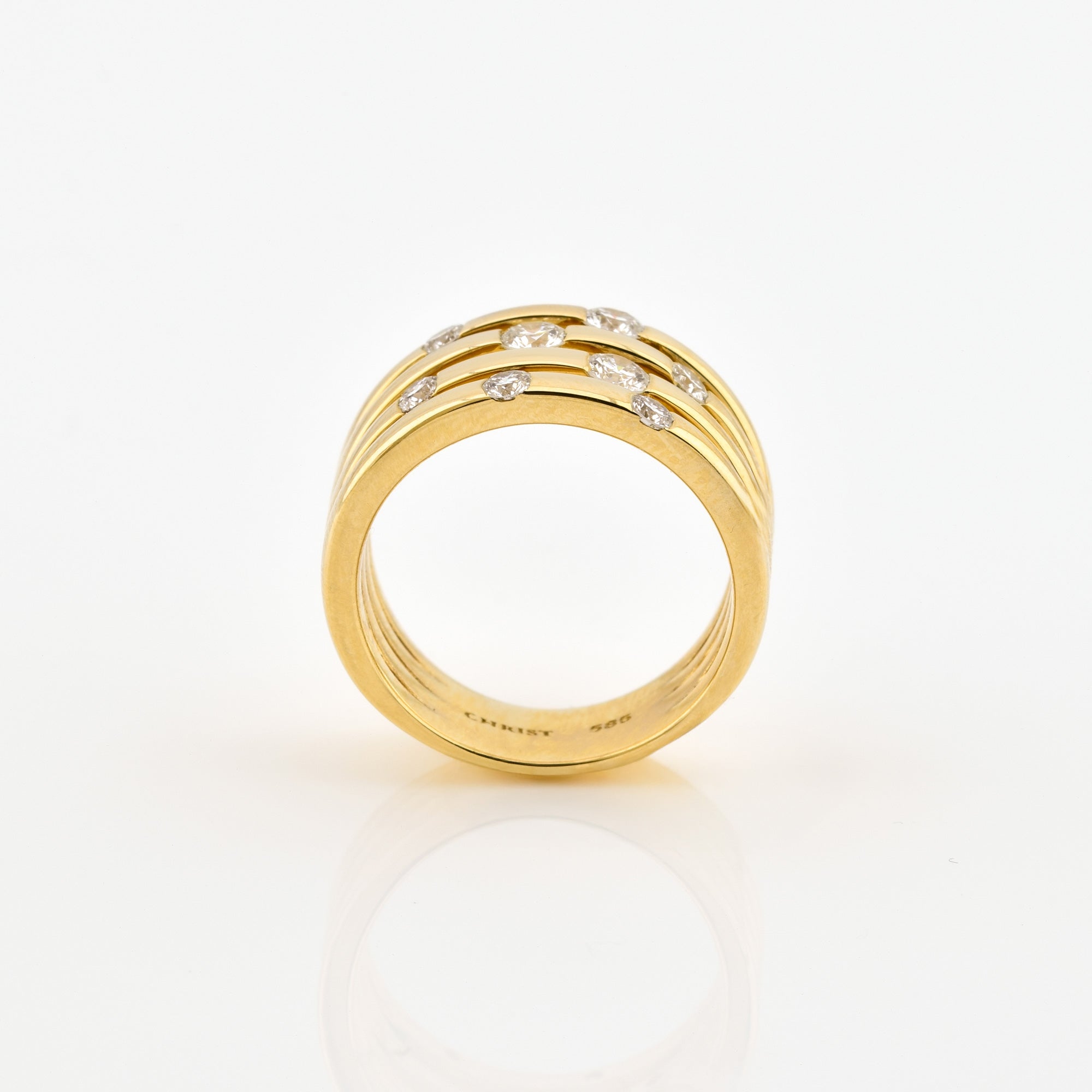 Bei dem Schmuckstück handelt es sich um einen Ring von Juwelier Christ aus 585 Gelbgold mit acht Brillanten von zusammen ca. 0,65 ct in der Qualität feines Weiß mit sehr kleinen Einschlüssen (TW/vs).