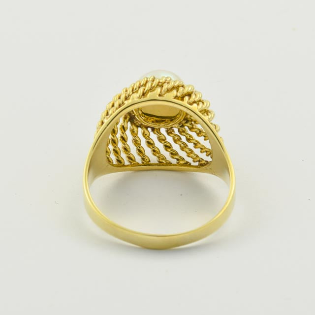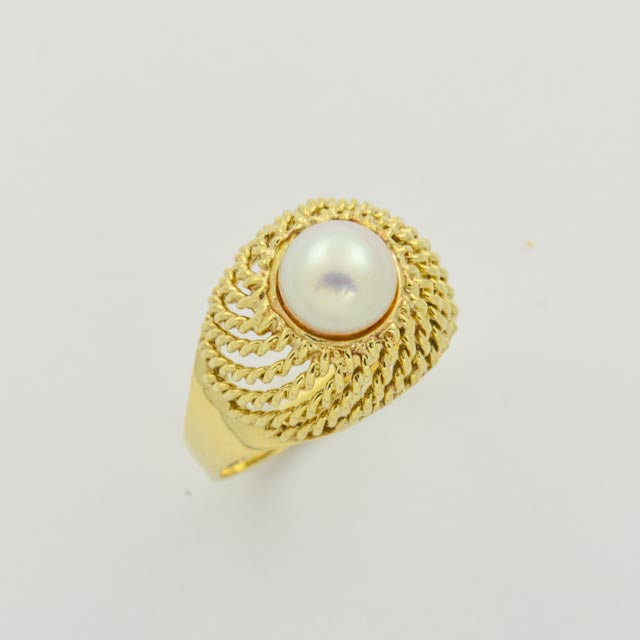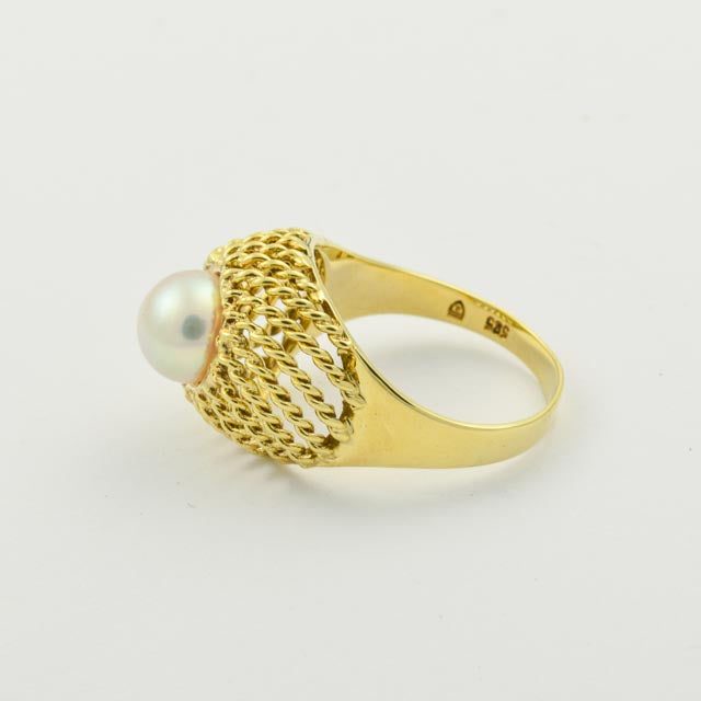 Bei dem Schmuckstück handelt es sich um einen Ring aus 585 Gelbgold mit einer Zuchtperle.