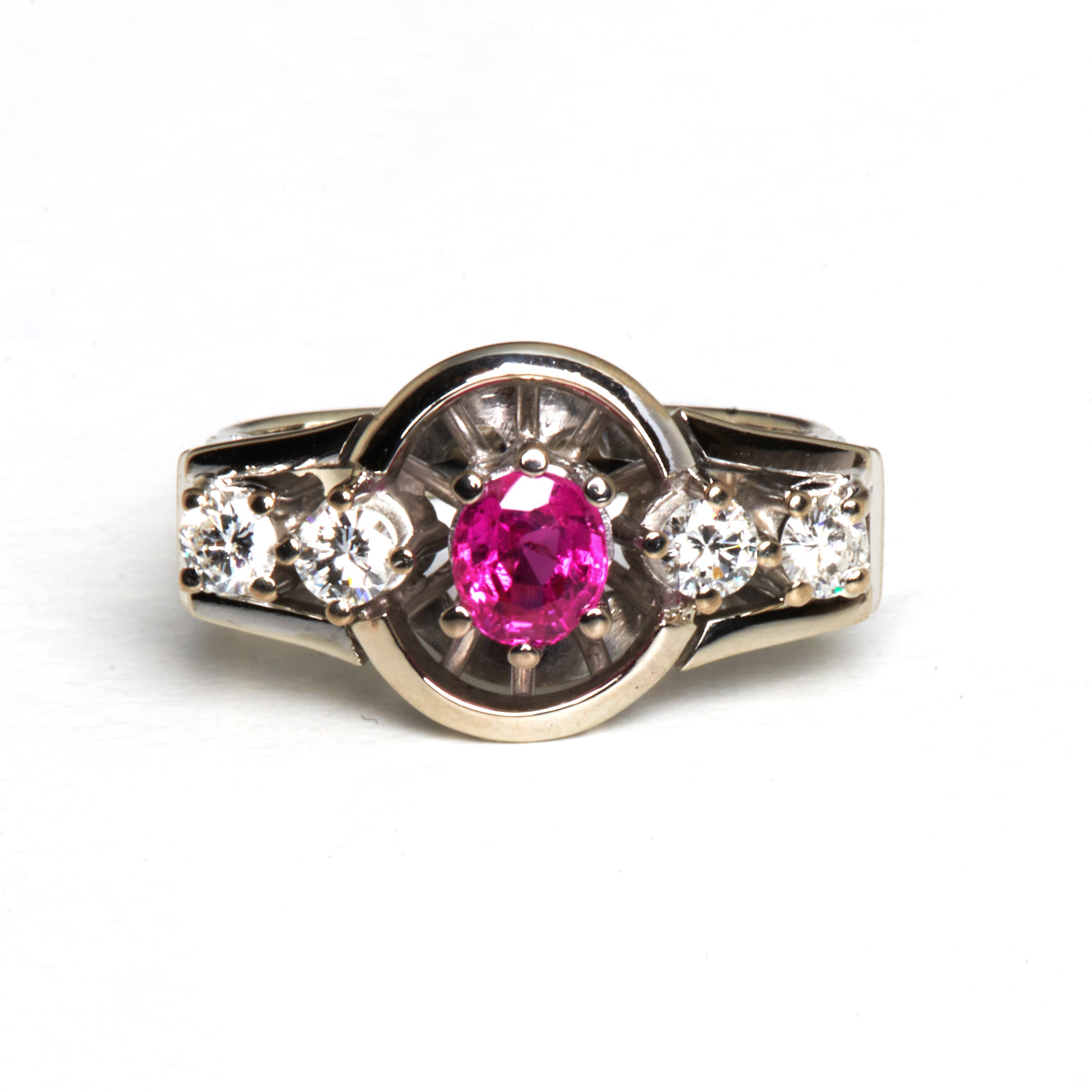 Rubinring aus Weißgold mit Brillant