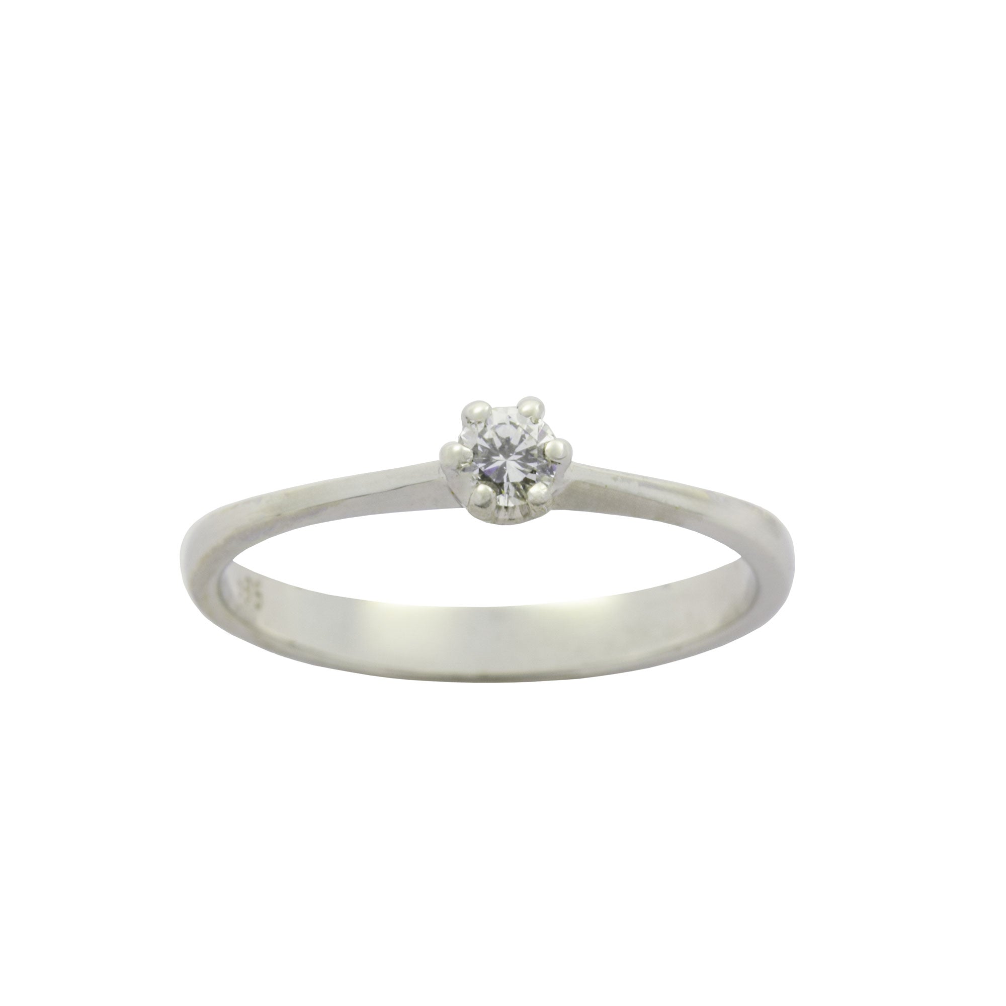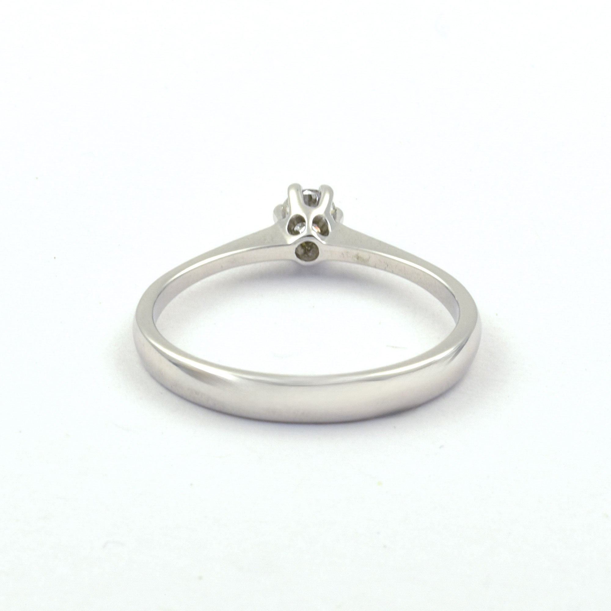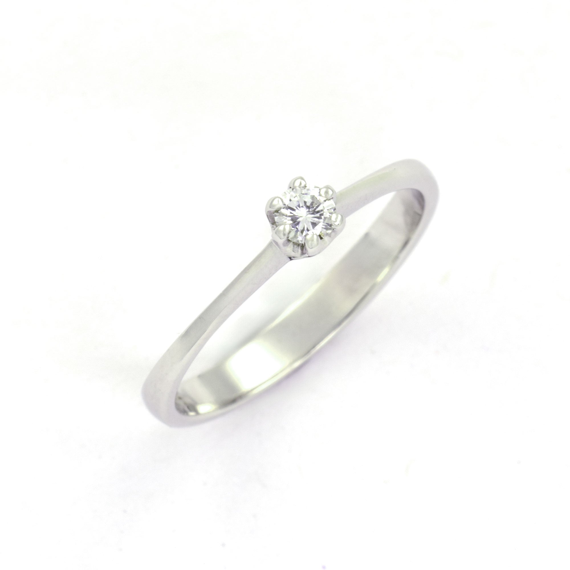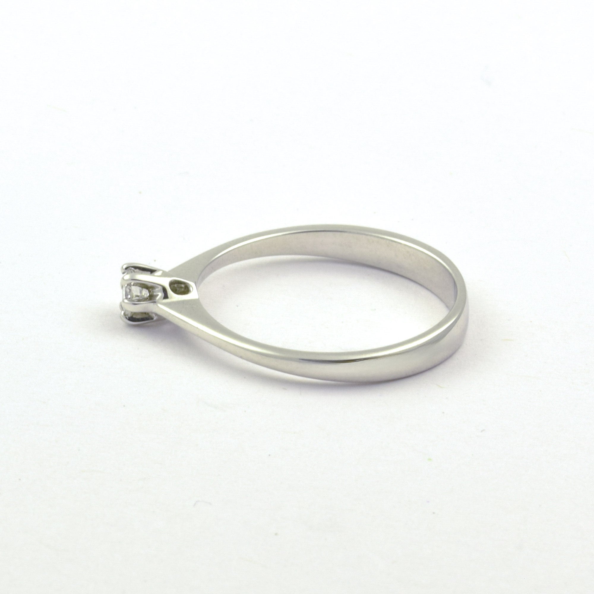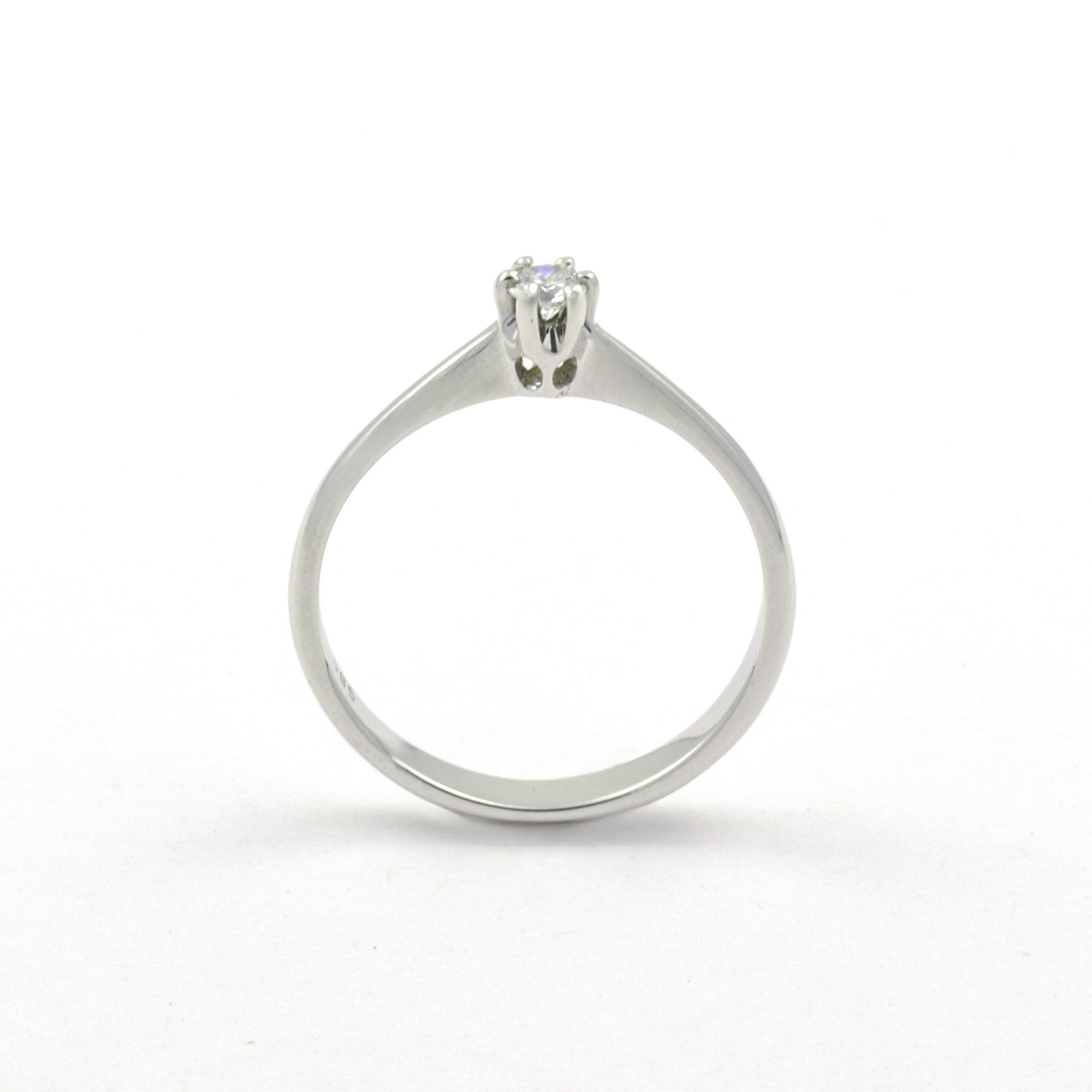 Bei dem Schmuckstück handelt es sich um einen Solitärring aus 585 Weißgold mit einem Brillanten von ca. 0,11 ct in der Qualität Weiß mit kleinen Einschlüssen (W/si).