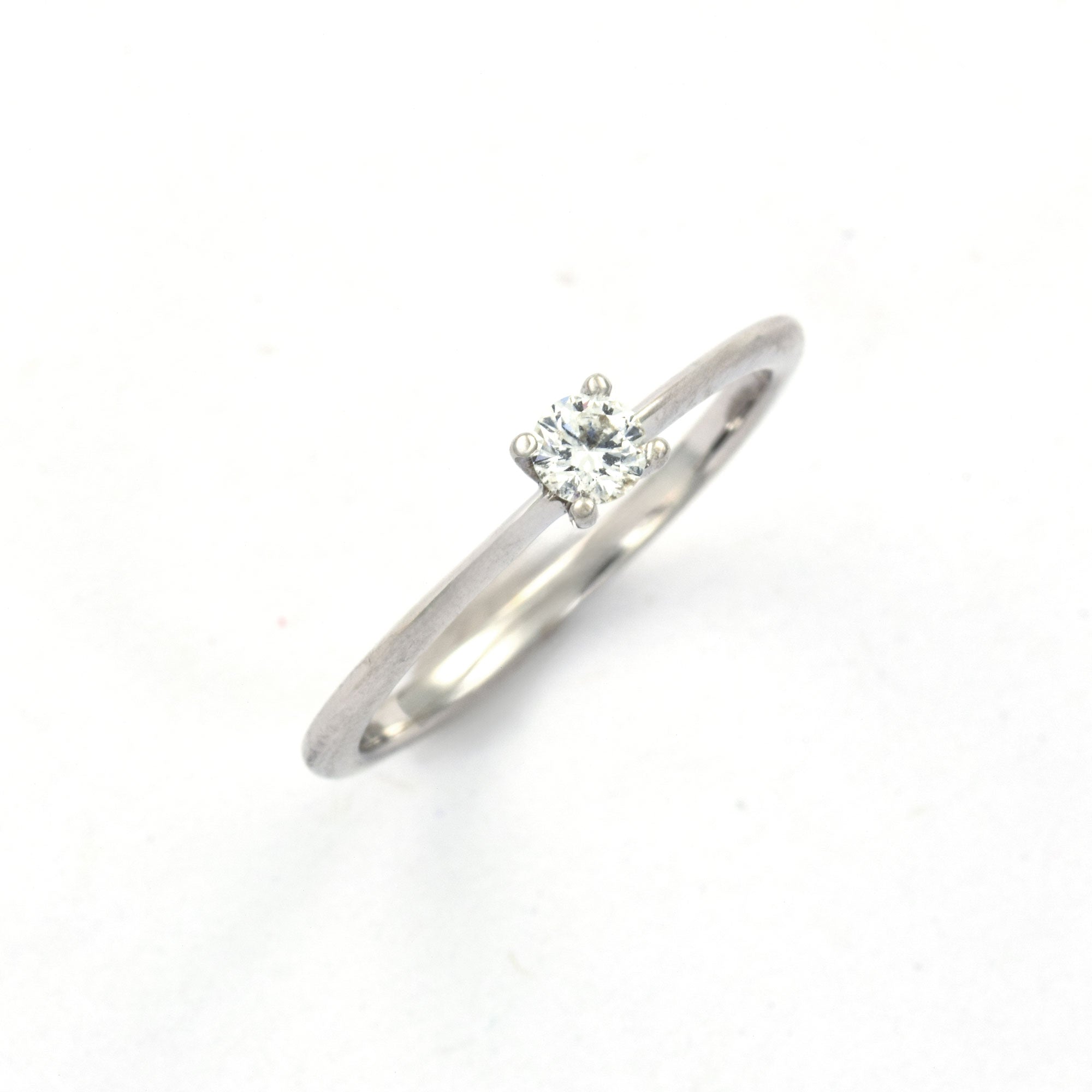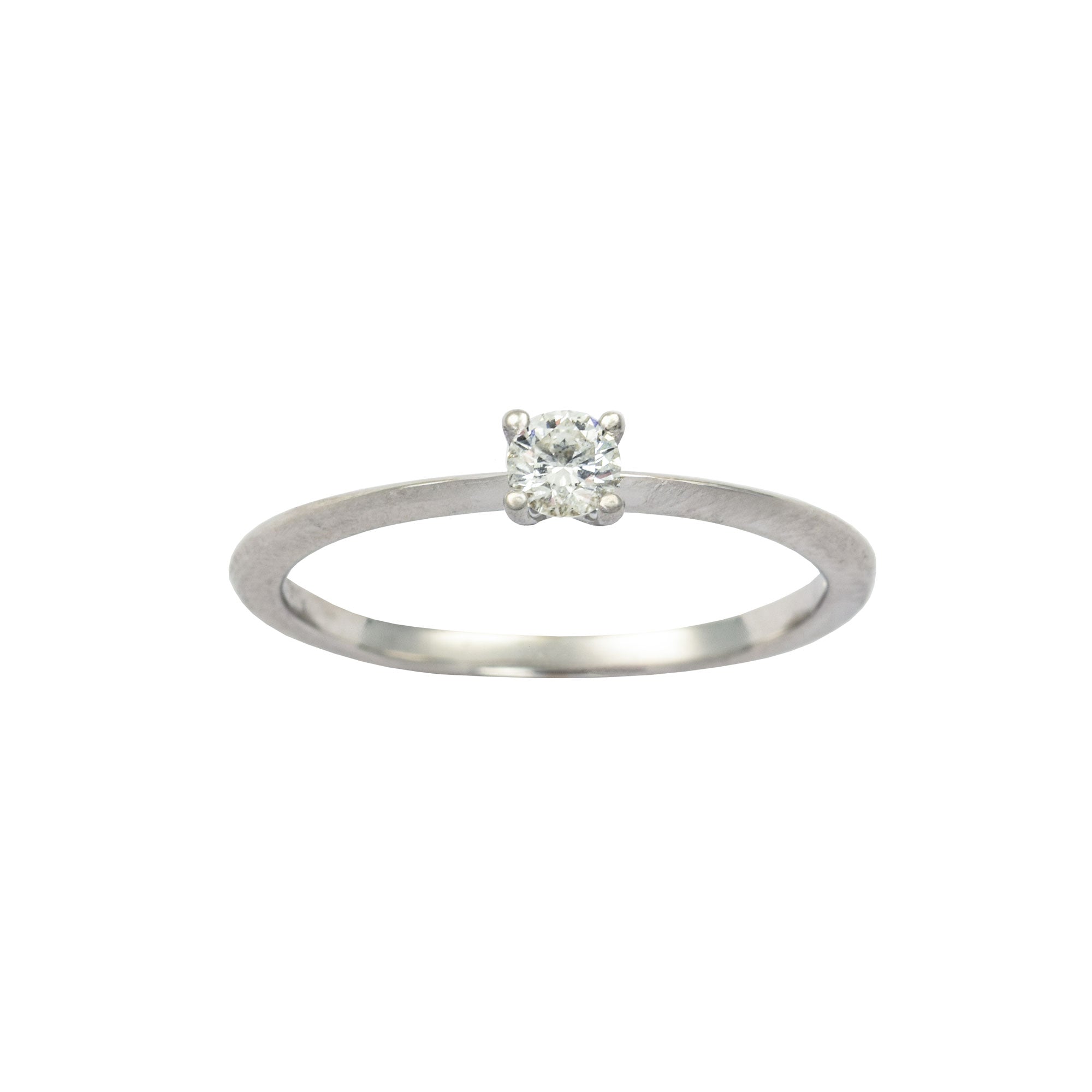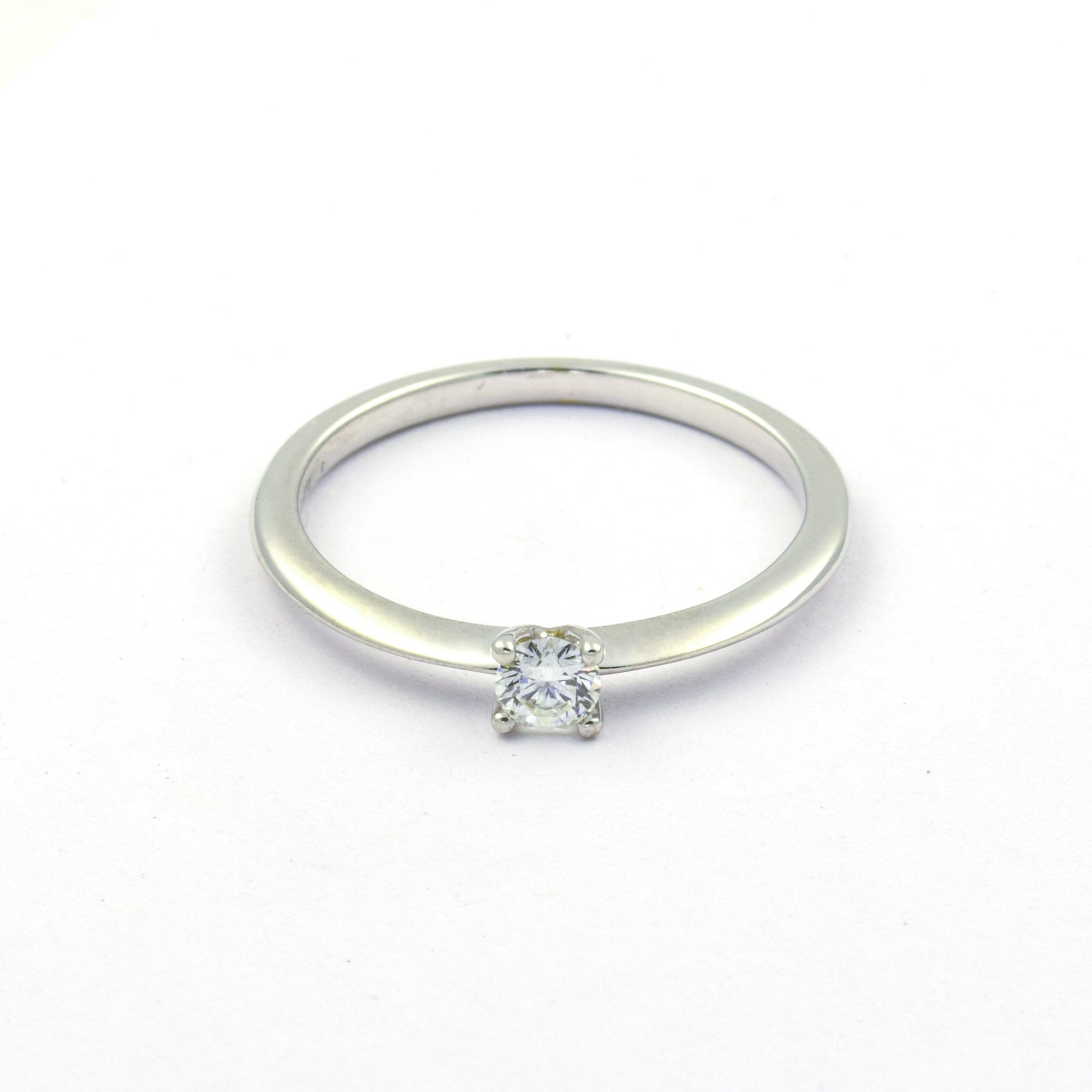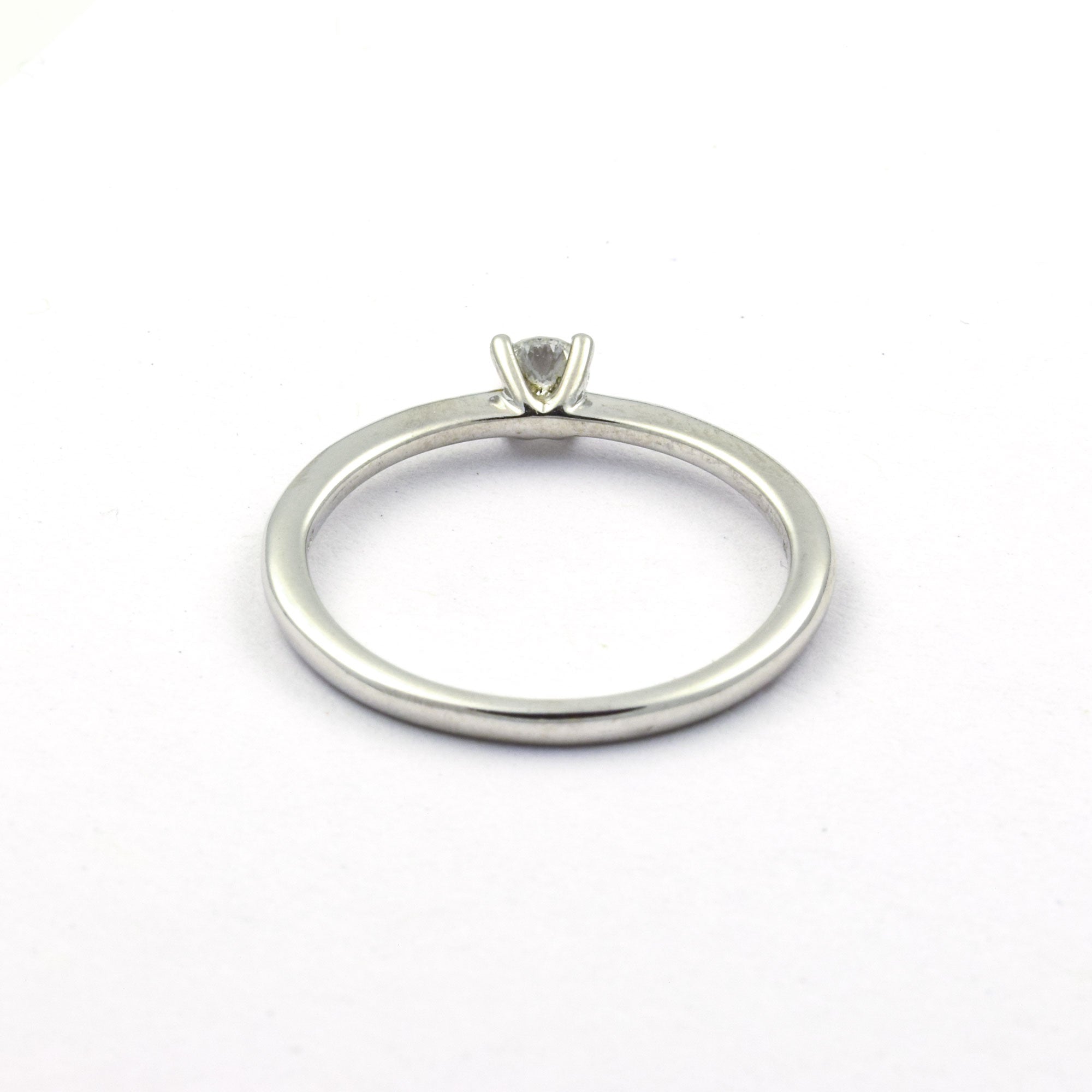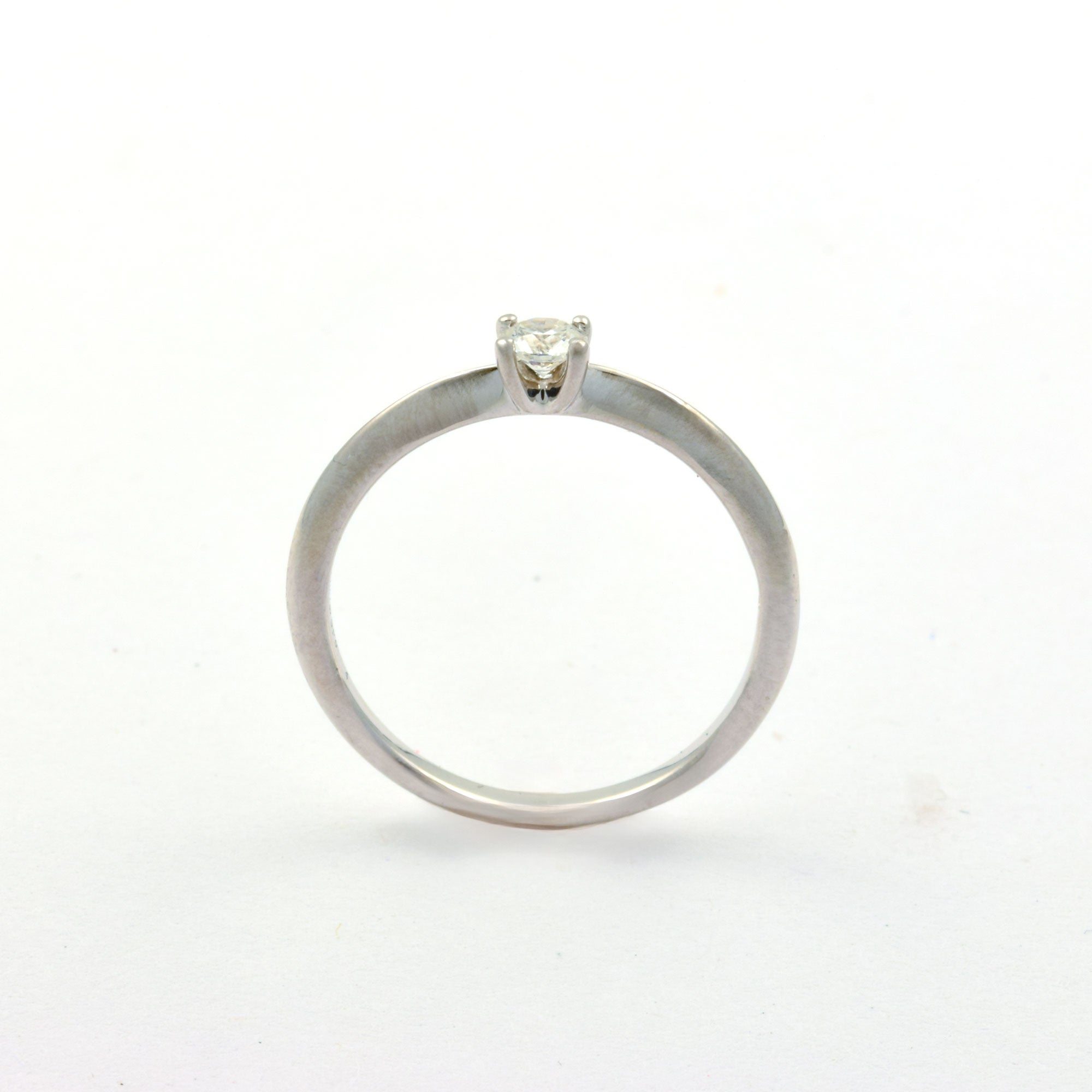 Bei dem Schmuckstück handelt es sich um einen Solitärring aus 585 Weißgold mit einem Brillanten von ca. 0,15 ct in der Qualität Weiß mit kleinen Einschlüssen (W/si).