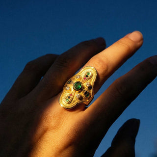 Historisch betrachtet stehen Statementringe für Selbstbewusstsein und Unabhängigkeit. Seit den 1920er-Jahren setzen Frauen mit auffälligen Cocktailringen ein modisches Statement, das Freiheit und Rebellion symbolisiert. Heute knüpfen moderne Designs daran an, interpretieren das Erbe neu und verbinden klassische Handwerkskunst mit aktuellen Trends.