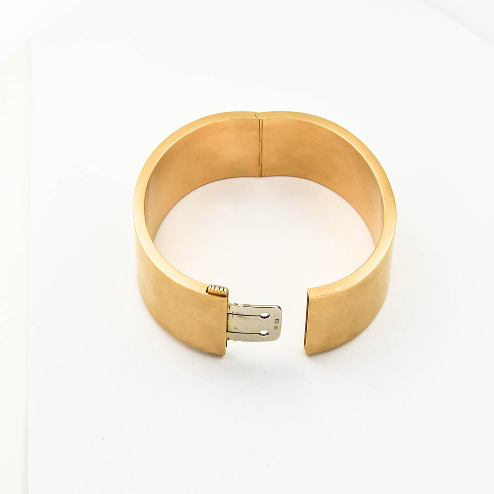 Bei dem Schmuckstück handelt es sich um einen Scharnierarmreif aus 750 Gelbgold.