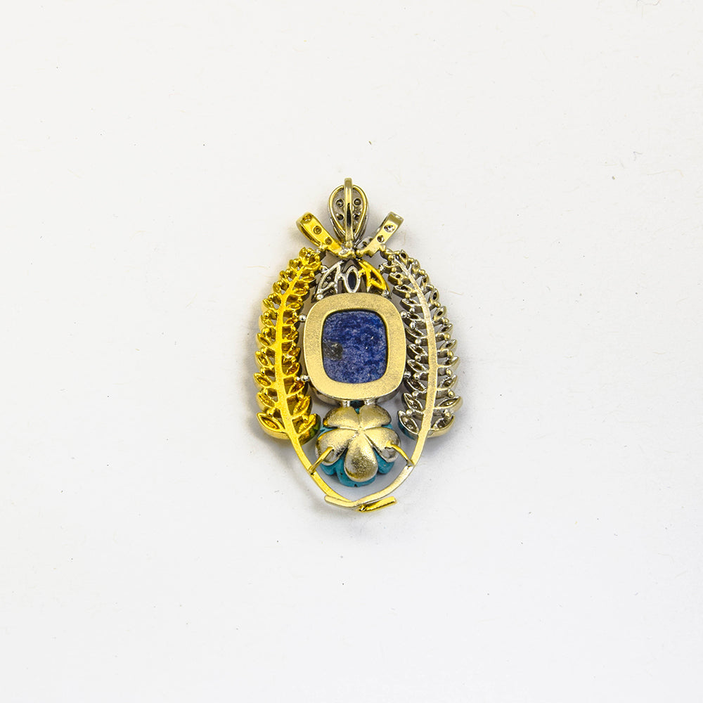 Anhänger aus Gelb- und Weißgold mit Lapislazuli, Türkis und Saphir