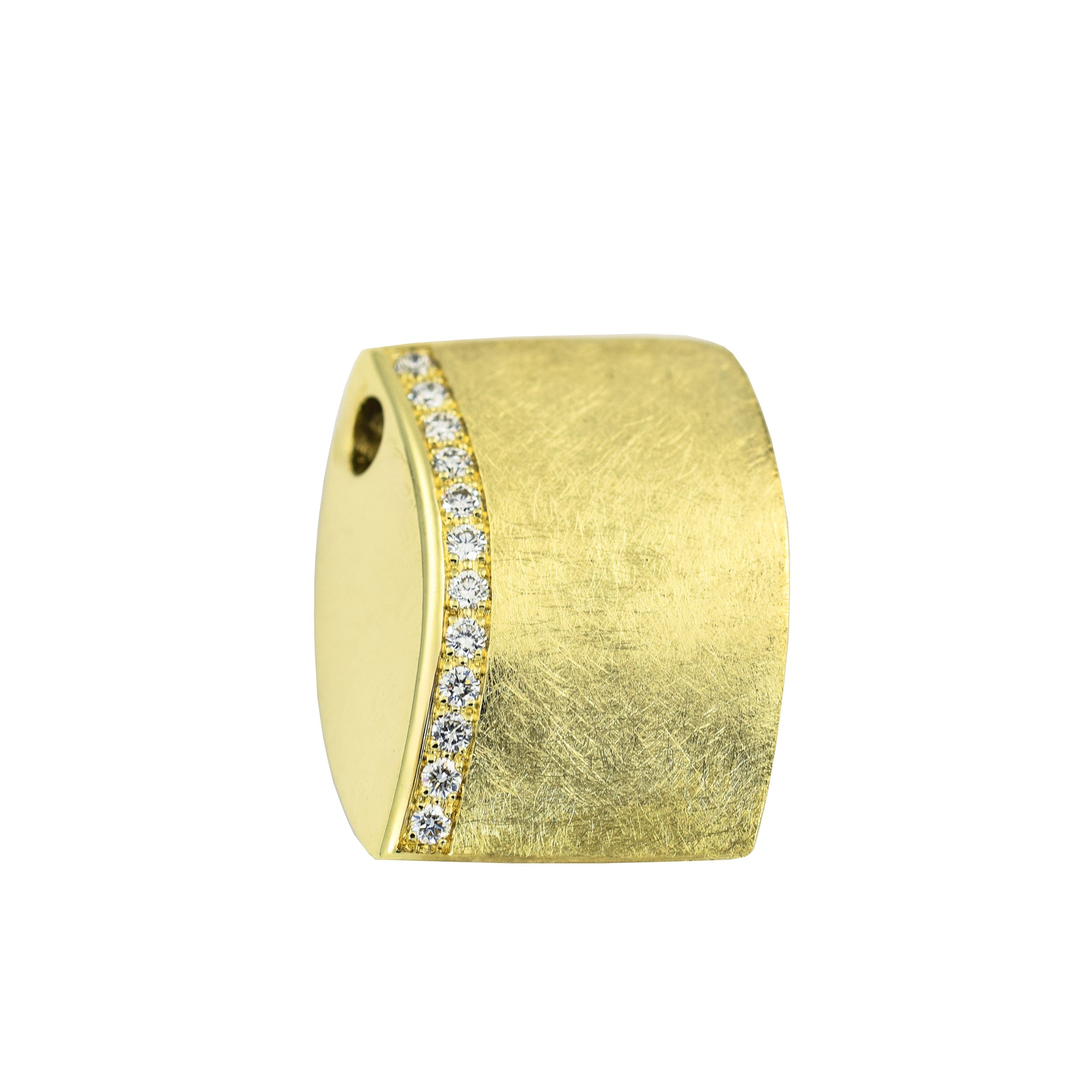 Bei dem Schmuckstück handelt es sich um einen Anhänger aus 585 Gelbgold mit zwölf Brillanten von zusammen ca. 0,28 ct in der Qualität feines Weiß mit sehr kleinen Einschlüssen (TW/vs).