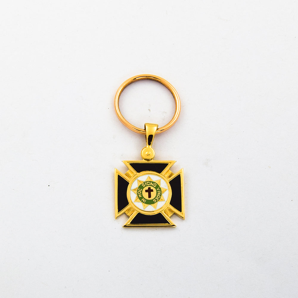 Bei dem Schmuckstück handelt es sich um einen emaillierten und gravierten Anhänger "Freimaurer" aus 585 Gelbgold.
