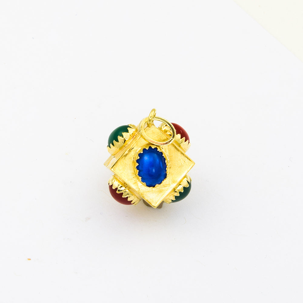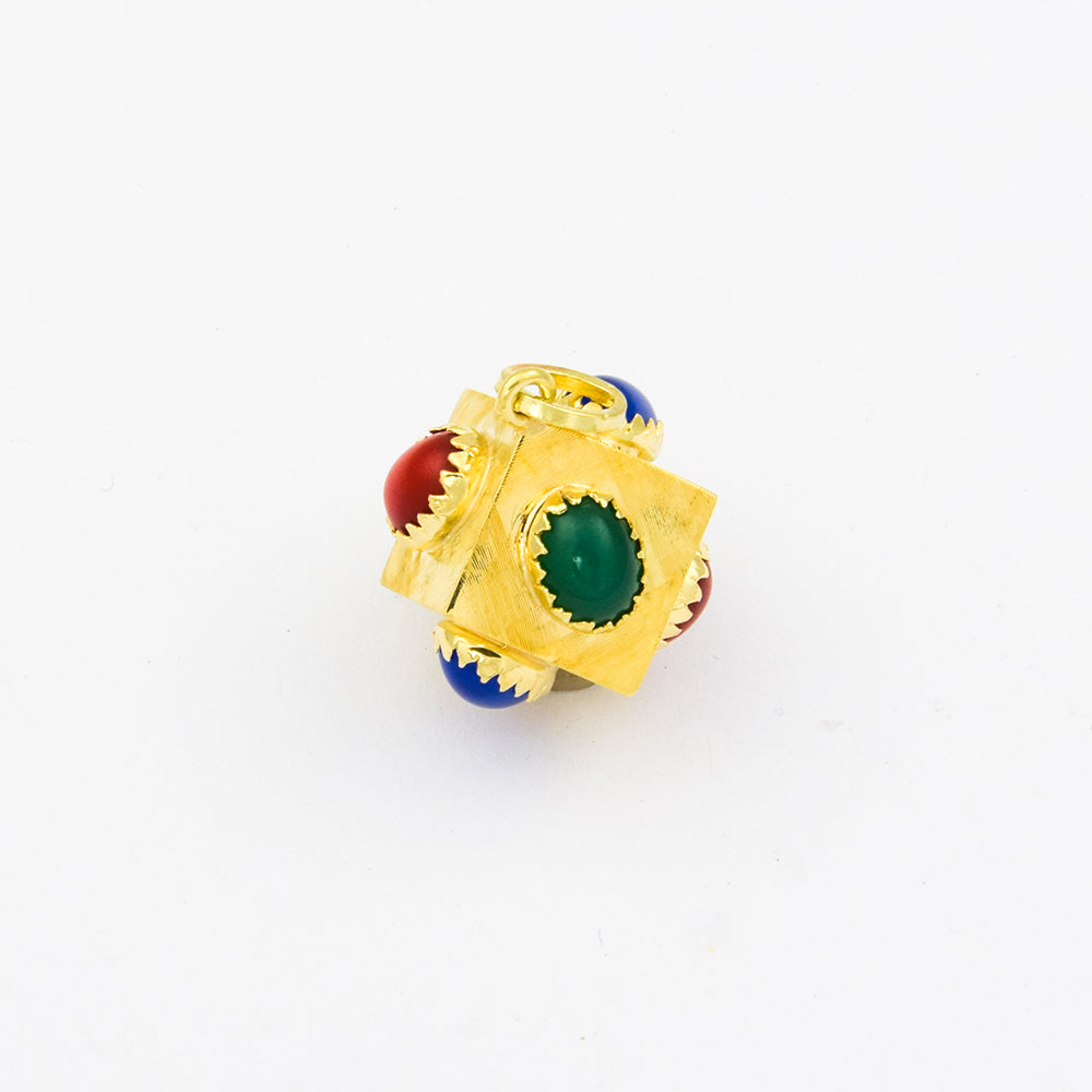 Vintage Anhänger Würfel aus Gelbgold mit Glas