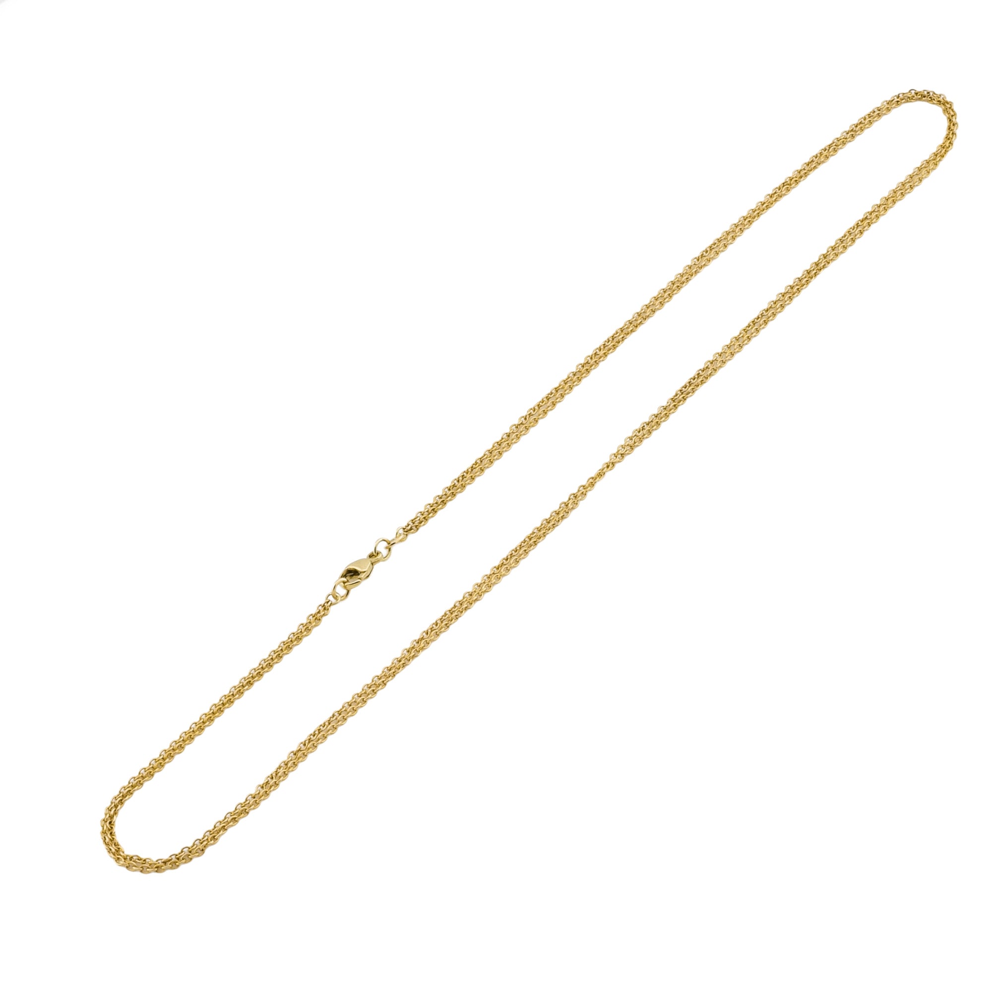 Bei dem Schmuckstück handelt es sich um eine zweireihige Ankerkette aus 585 Gelbgold. Das Schmuckstück hat eine Gesamtlänge von 43,5 cm.