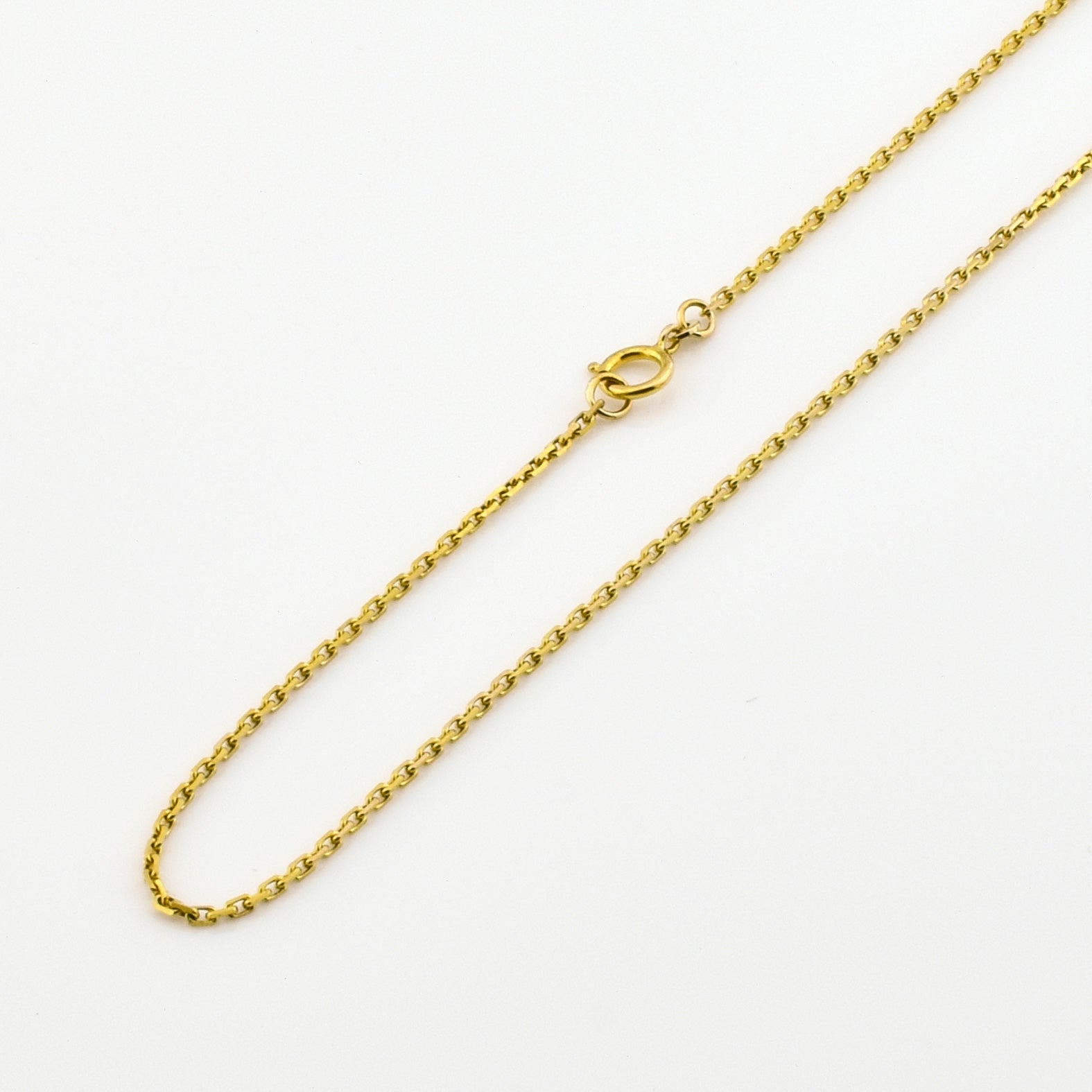 Bei dem Schmuckstück handelt es sich um eine Ankerkette aus 585 Gelbgold. Das Schmuckstück hat eine Gesamtlänge von 45 cm.