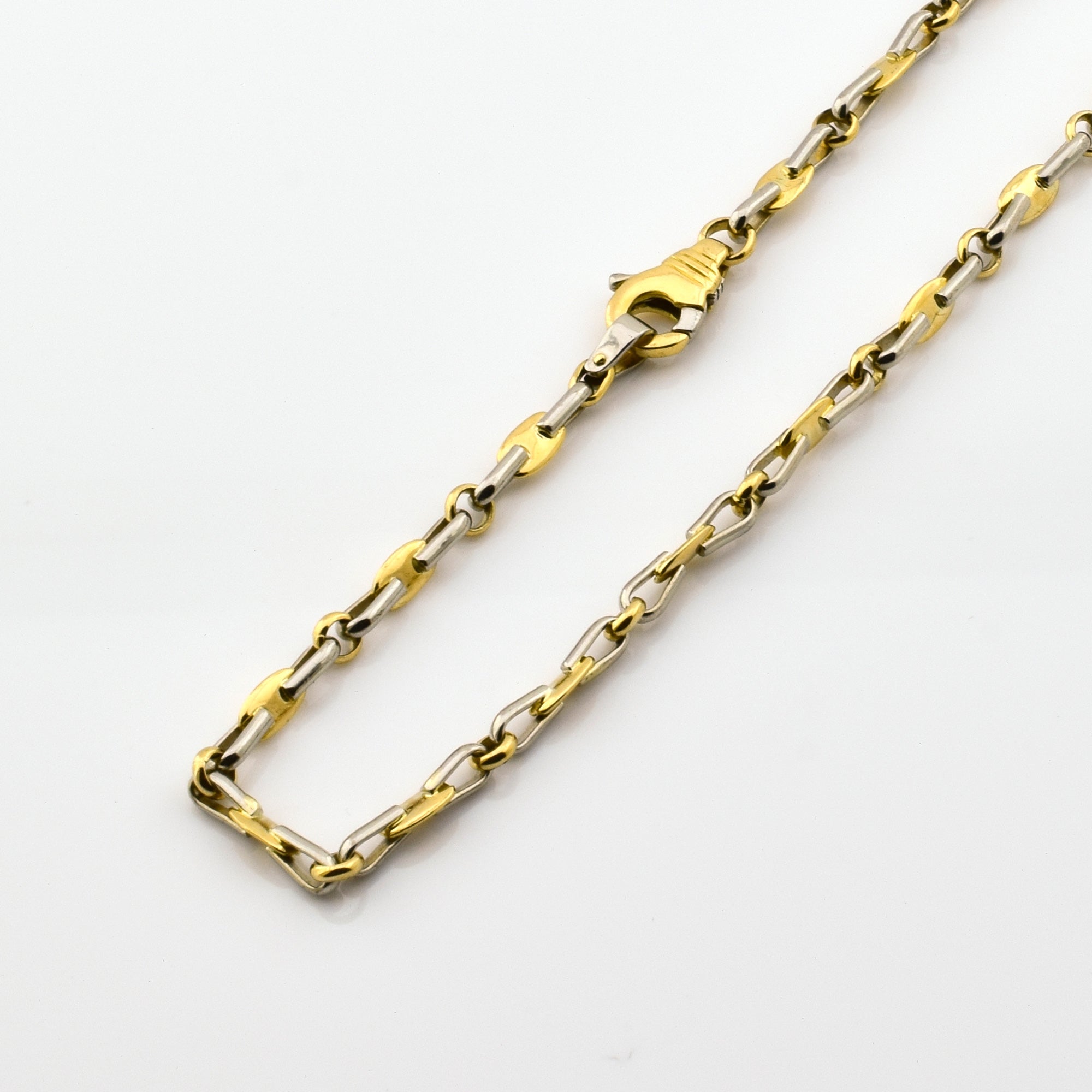 Bei dem Schmuckstück handelt es sich um eine Halskette aus 750 Gelb- und Weißgold. Das Schmuckstück hat eine Gesamtlänge von 50 cm.