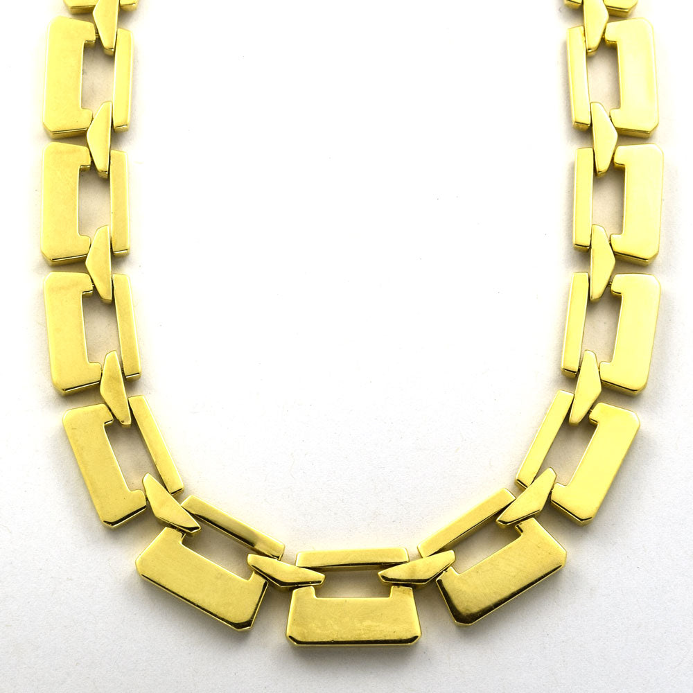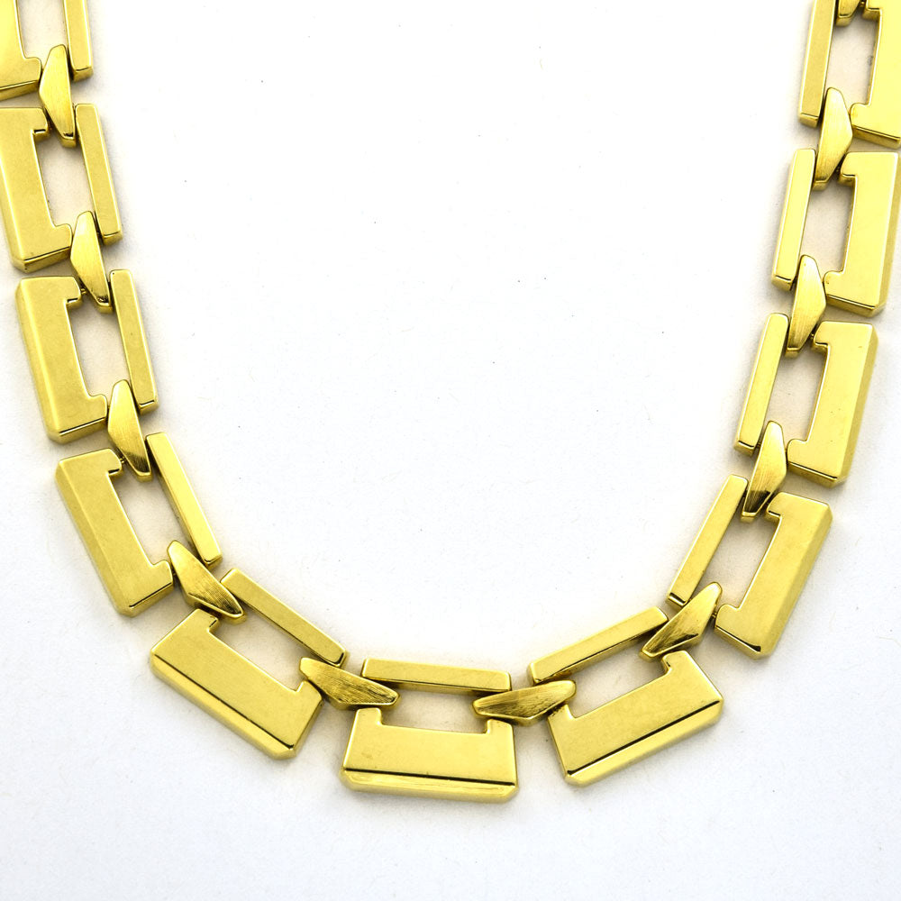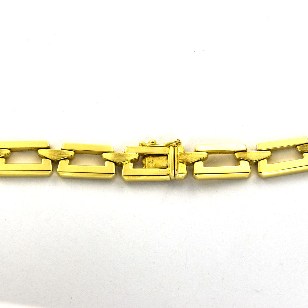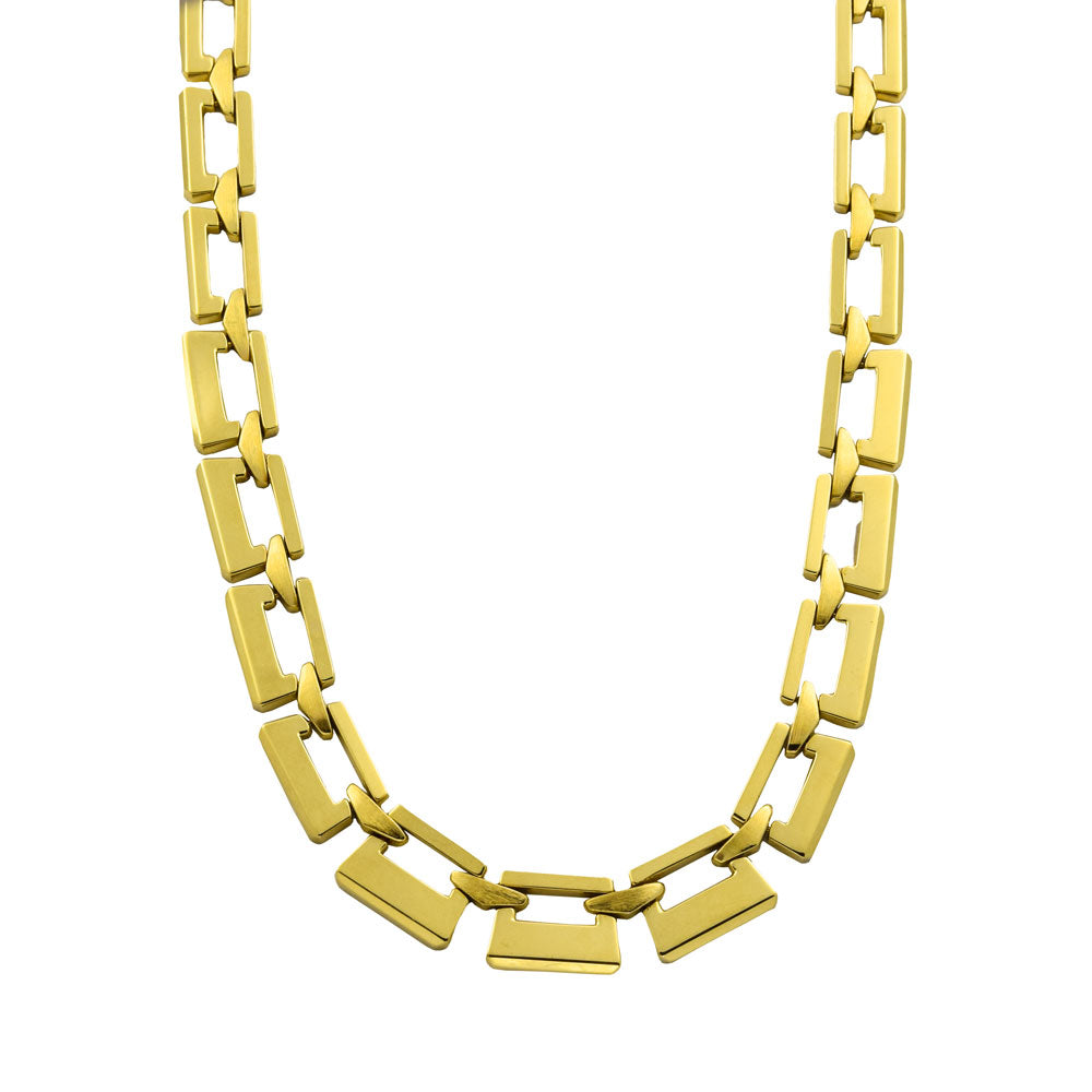 Bei dem Schmuckstück handelt es sich um eine Halskette aus 585 Gelbgold. Das Schmuckstück hat eine Gesamtlänge von 44 cm.
