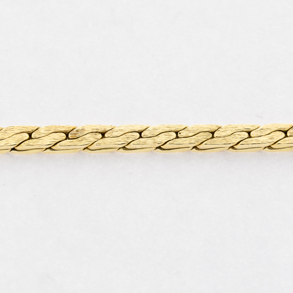 Bei dem Schmuckstück handelt es sich um eine Halskette aus 585 Gelbgold. Das Schmuckstück hat eine Gesamtlänge von 44 cm.