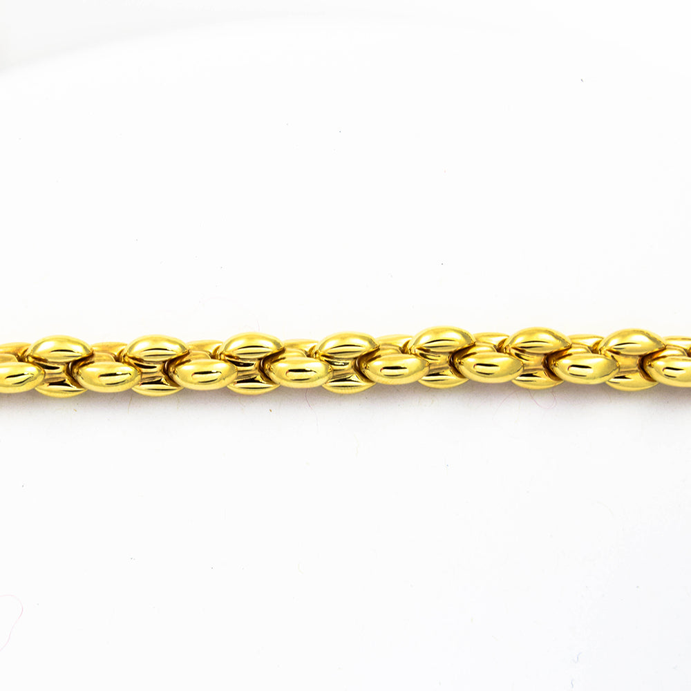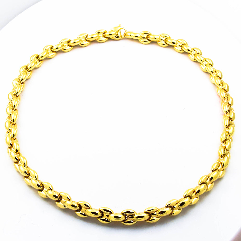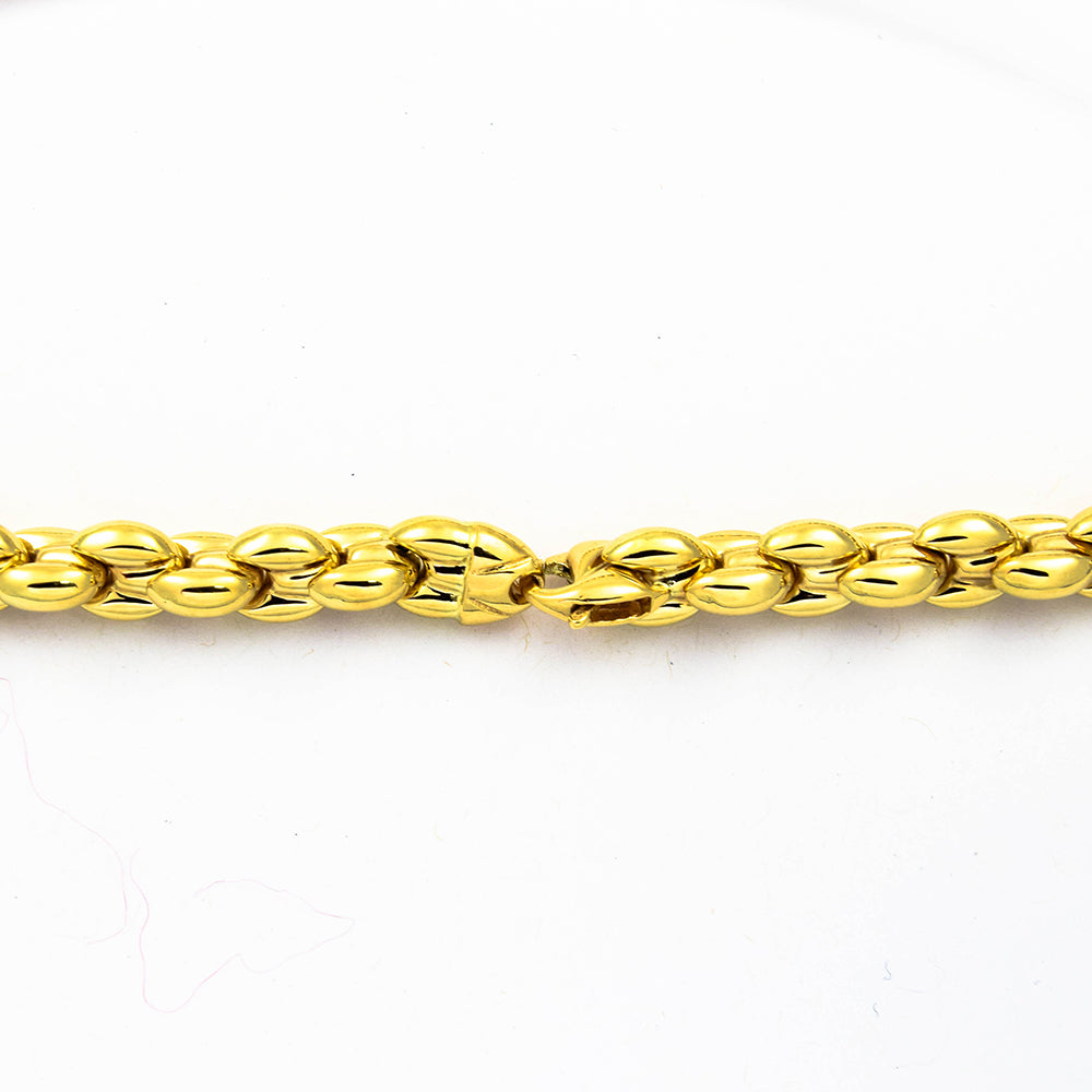 Bei dem Schmuckstück handelt es sich um eine Halskette aus 585 Gelbgold. Das Schmuckstück hat eine Gesamtlänge von 50 cm.