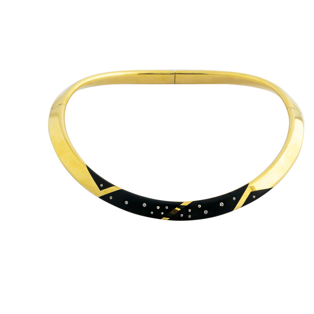 Vintage Halsreif aus Gelbgold mit Onyx und Brillant