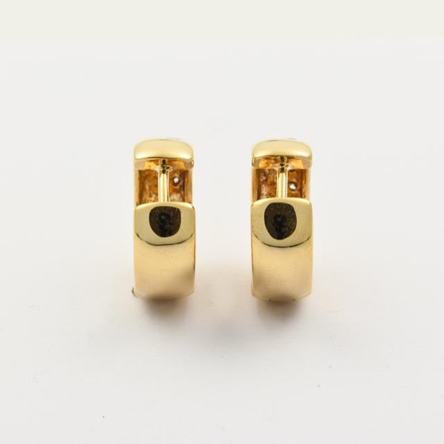 Bei dem Schmuckstück handelt es sich um ein Paar Creolen aus 585 Gelbgold mit 16 Brillanten von zusammen ca. 0,3 ct in der Qualität Weiß und piqué 1 (W/p 1).