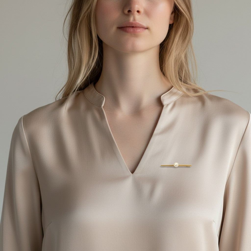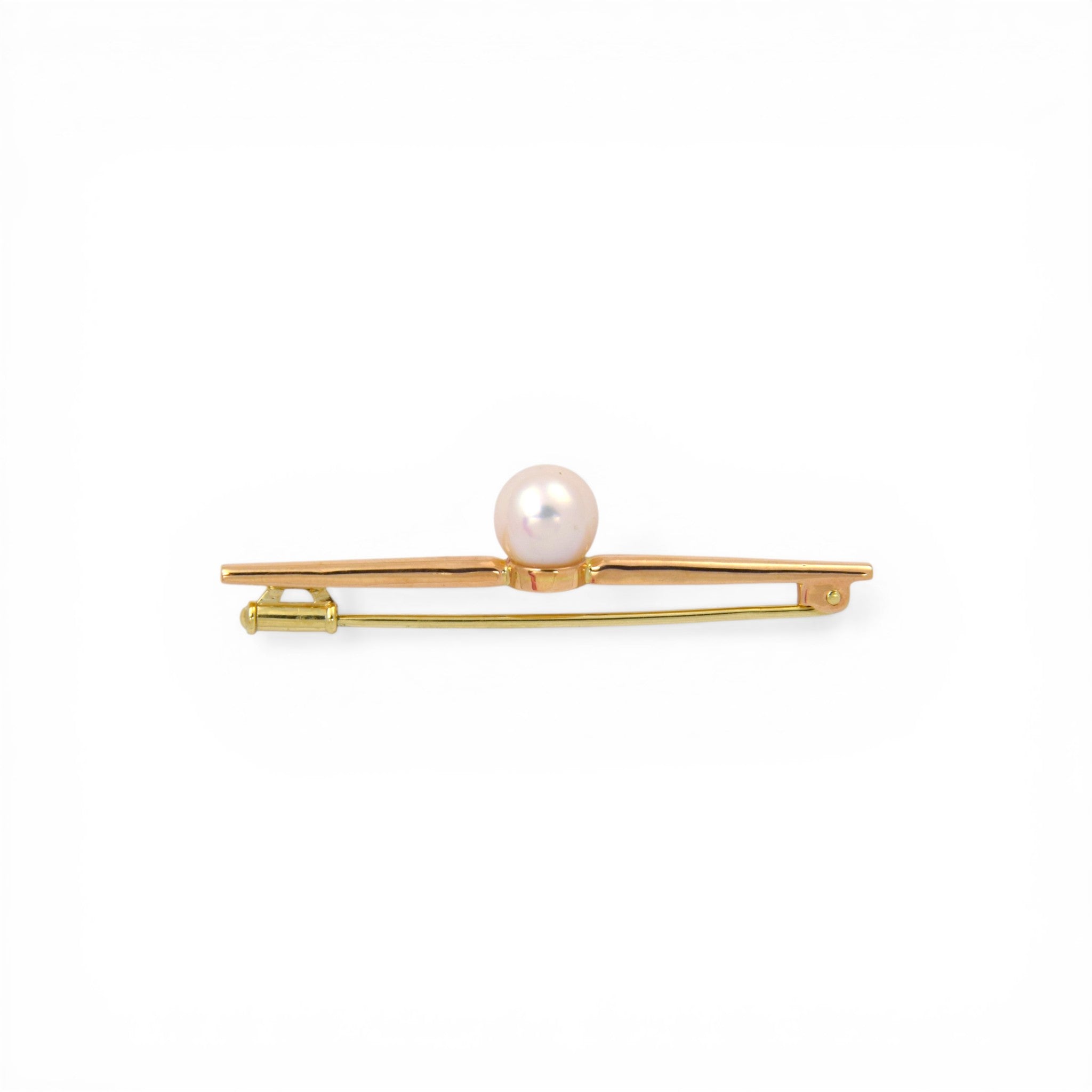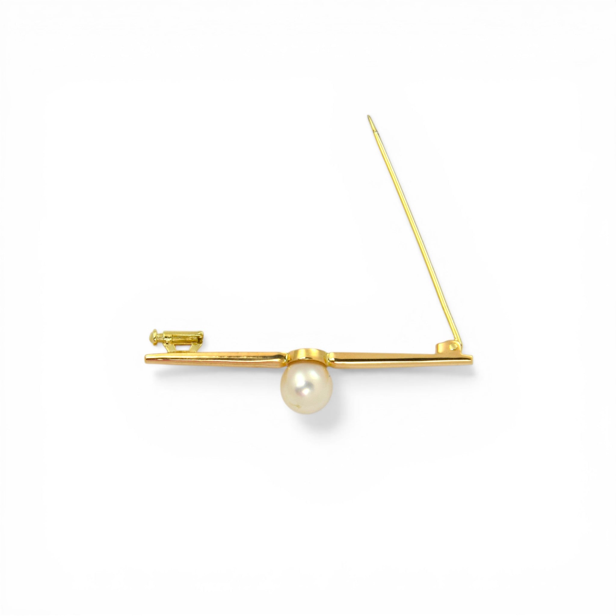 Bei dem Schmuckstück handelt es sich um eine Brosche aus 585 Gelbgold mit einer Zuchtperle.