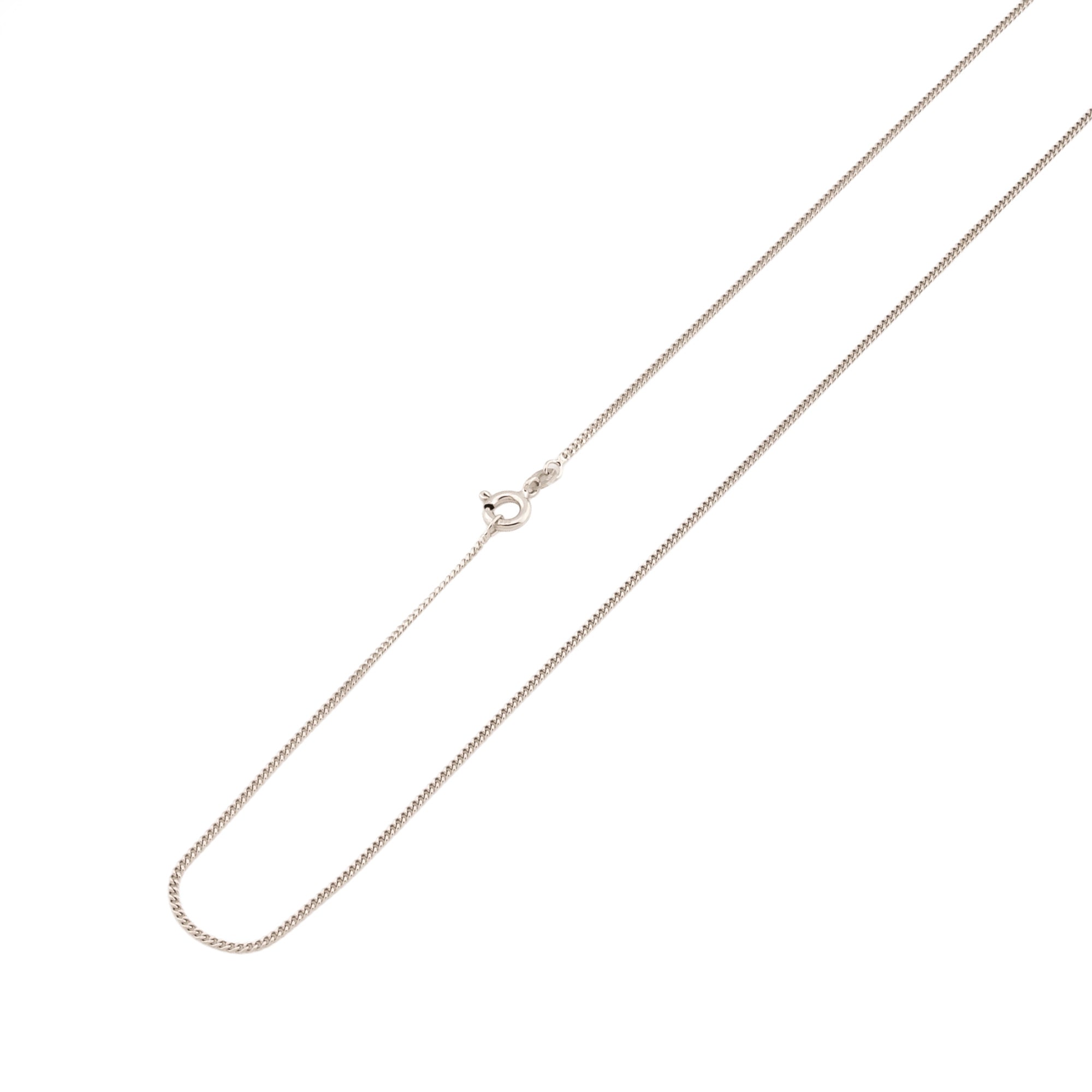 Bei dem Schmuckstück handelt es sich um eine Panzerkette der Marke FBM aus 585 Weißgold. Das Schmuckstück hat eine Gesamtlänge von 45,5 cm.