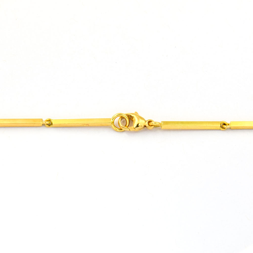 Bei dem Schmuckstück handelt es sich um eine Phantasiekette aus 750 Gelbgold. Das Schmuckstück hat eine Gesamtlänge von 46,5 cm.
