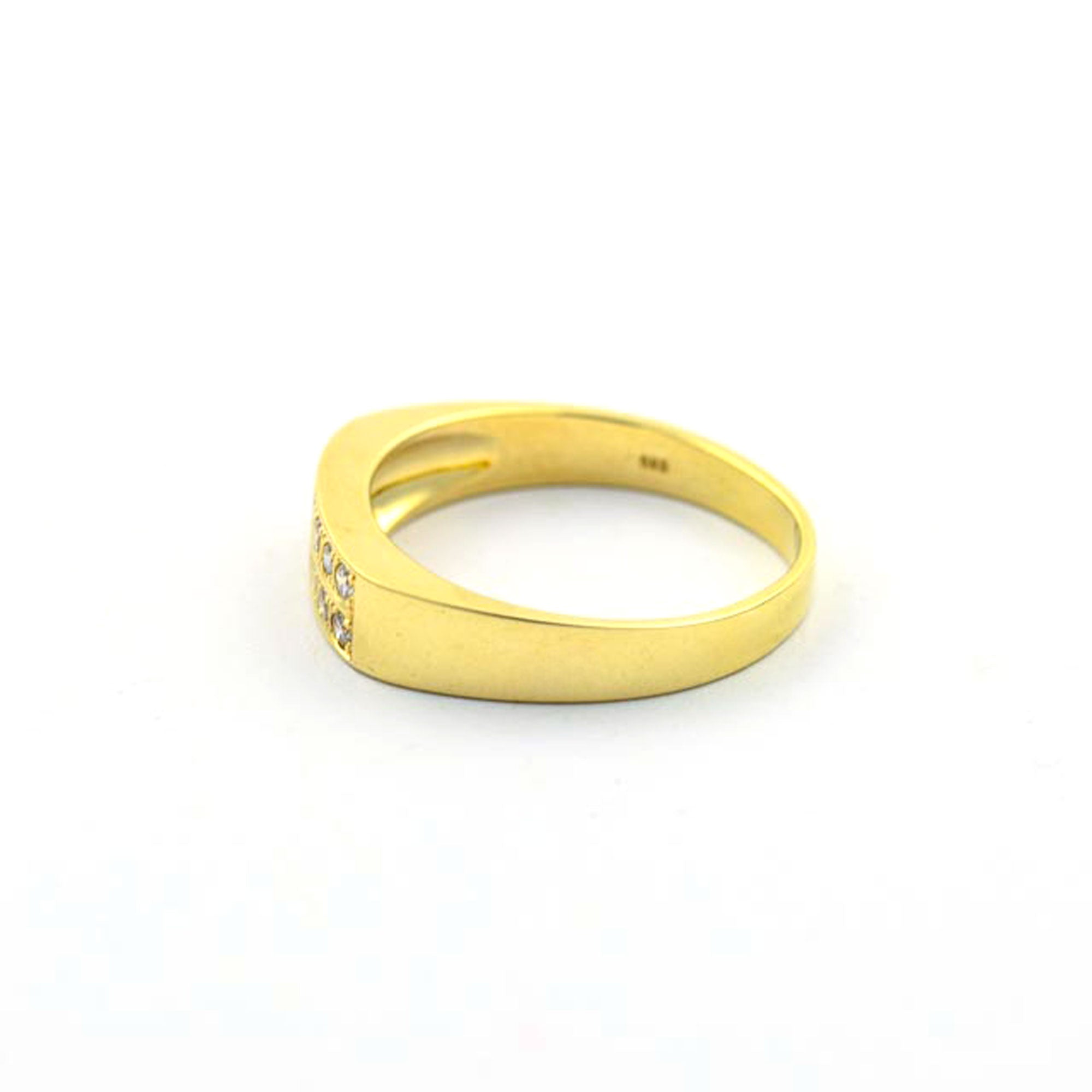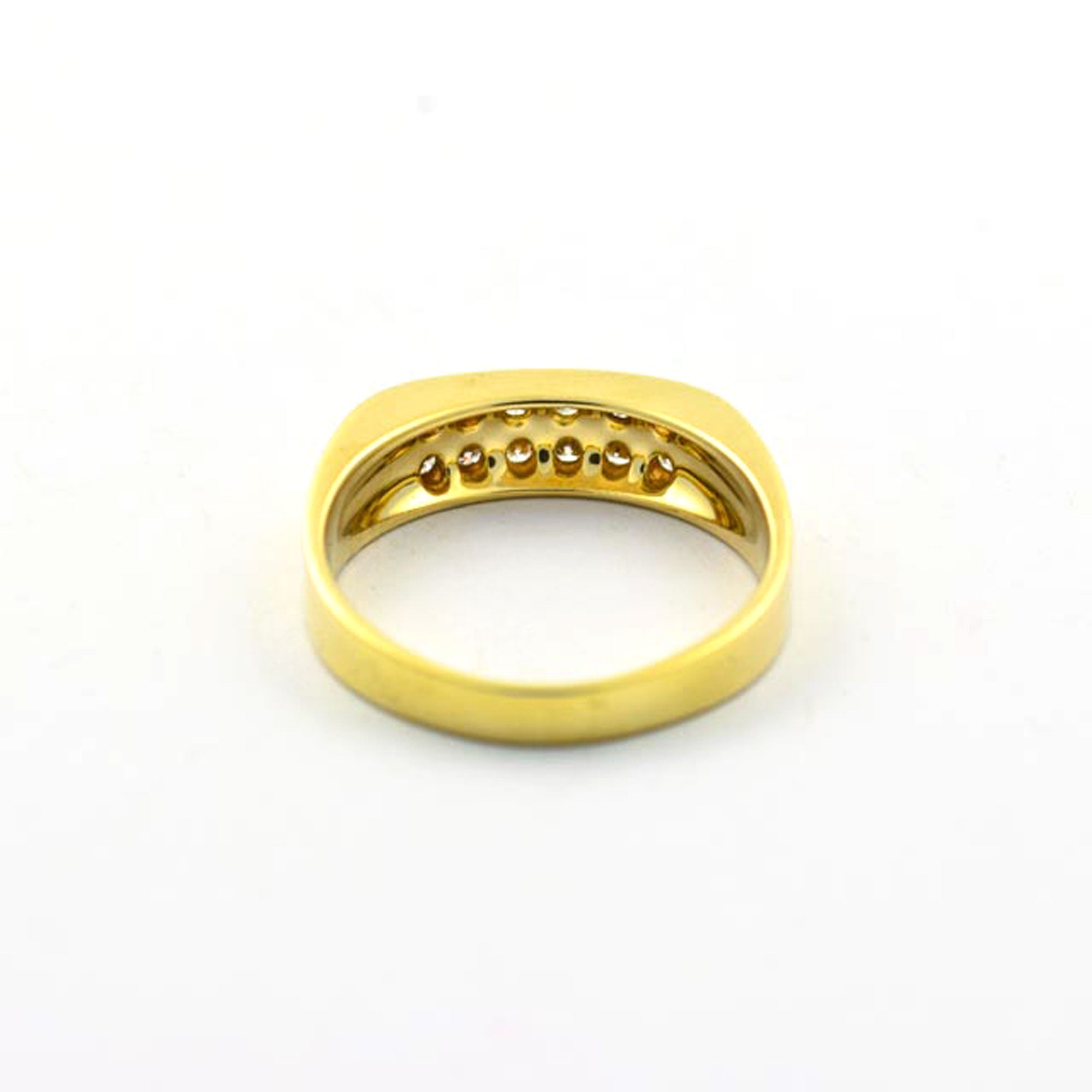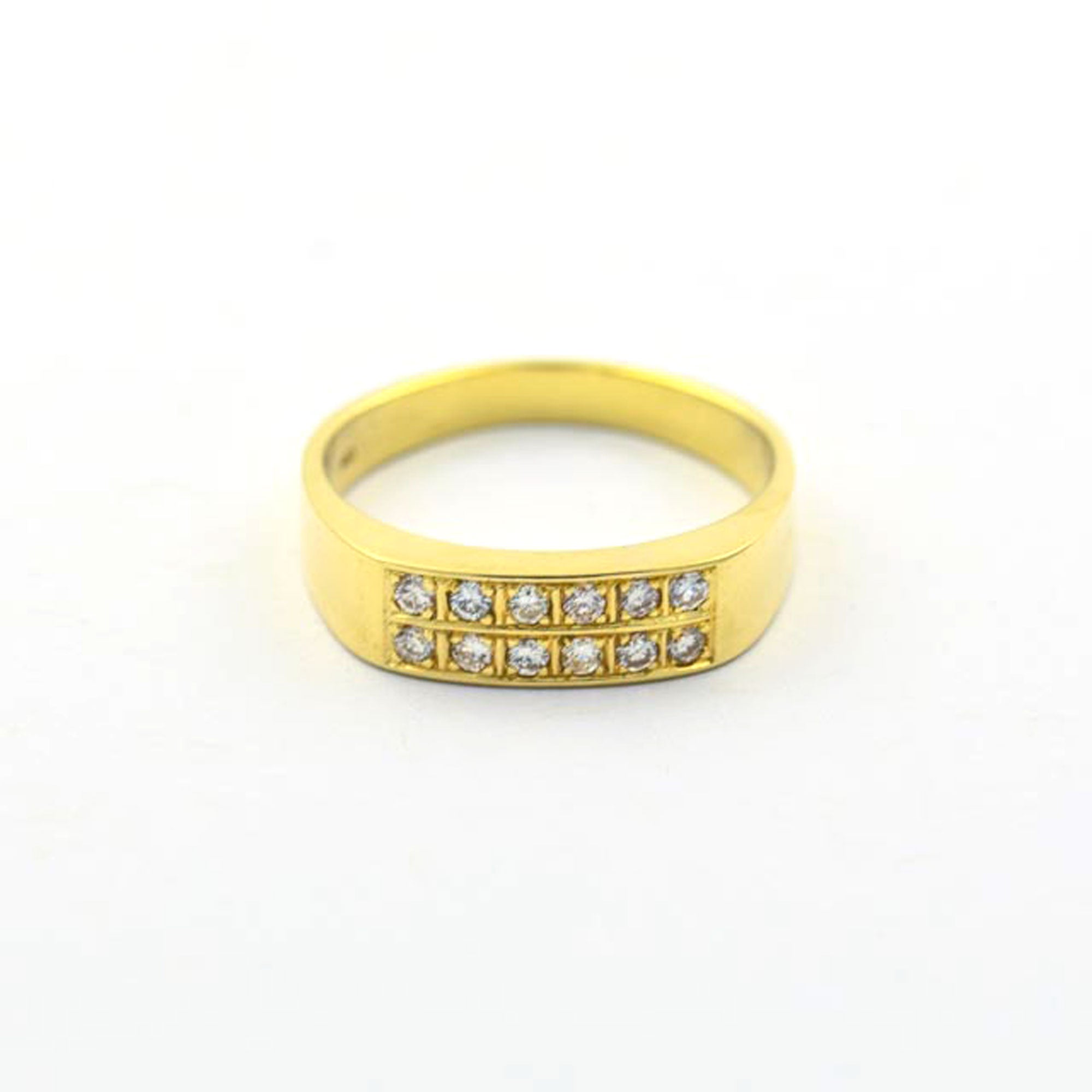 Bei dem Schmuckstück handelt es sich um einen Ring aus 585 Gelbgold mit zwölf Brillanten von zusammen ca. 0,18 ct in der Qualität Weiß mit sehr kleinen Einschlüssen (W/vs).