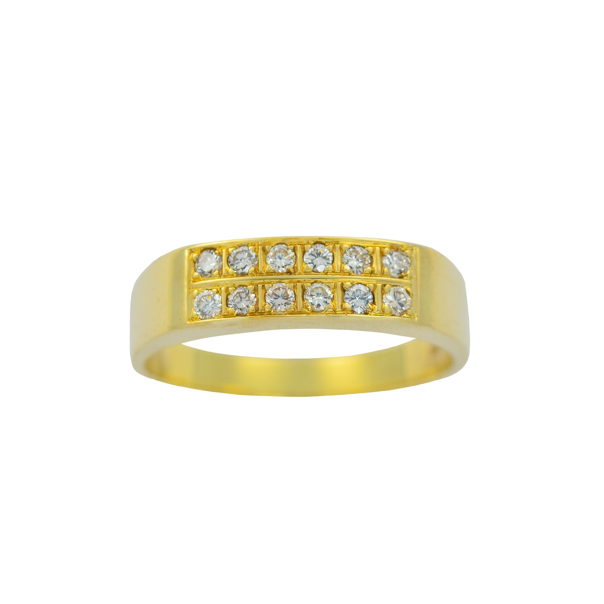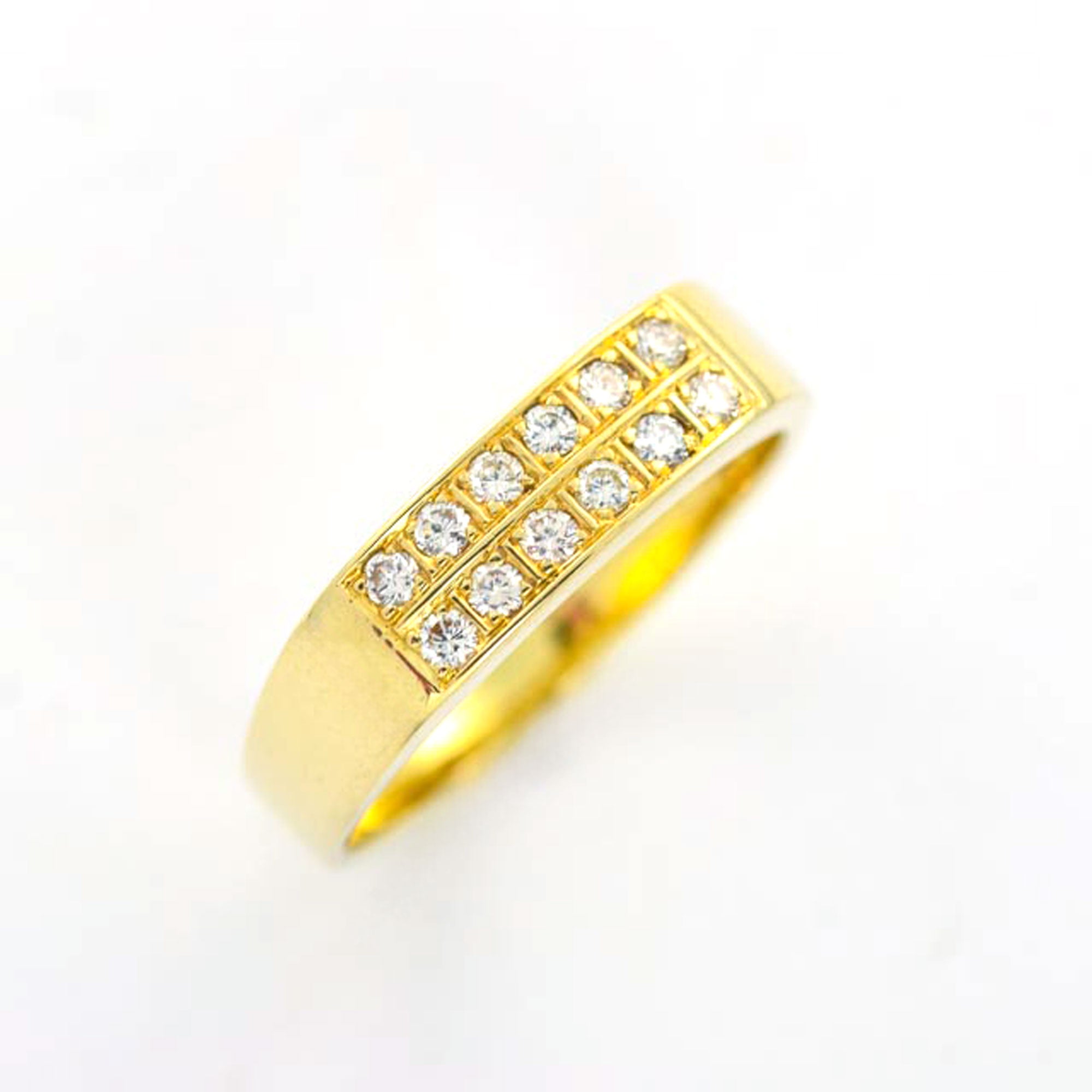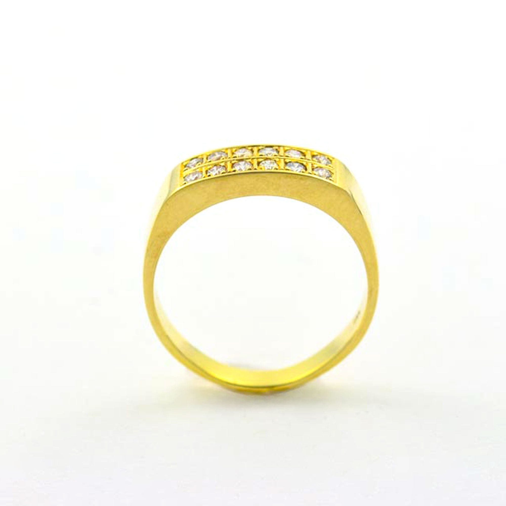 Bei dem Schmuckstück handelt es sich um einen Ring aus 585 Gelbgold mit zwölf Brillanten von zusammen ca. 0,18 ct in der Qualität Weiß mit sehr kleinen Einschlüssen (W/vs).