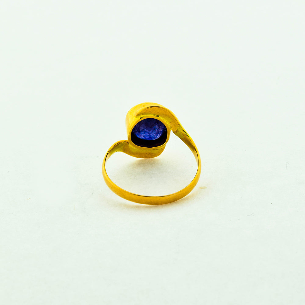 Bei dem Schmuckstück handelt es sich um einen Ring aus 750 Gelbgold mit einem Saphir.