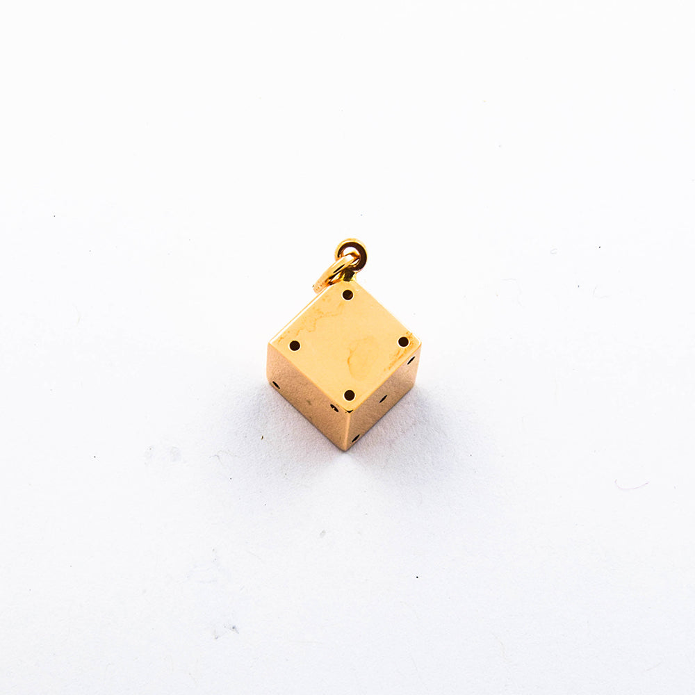 Bei dem Schmuckstück handelt es sich um einen Anhänger "Würfel" aus 750 Rosegold.