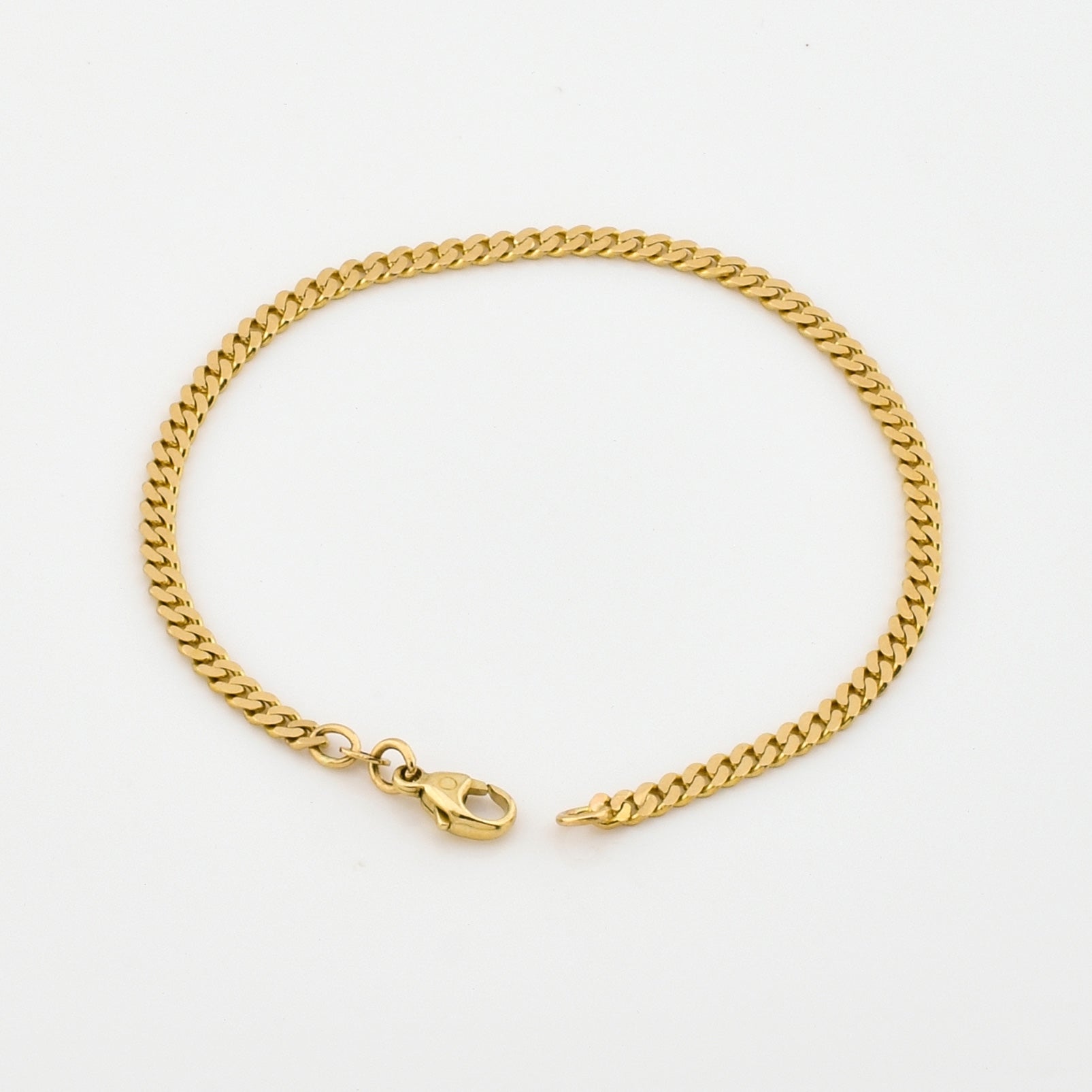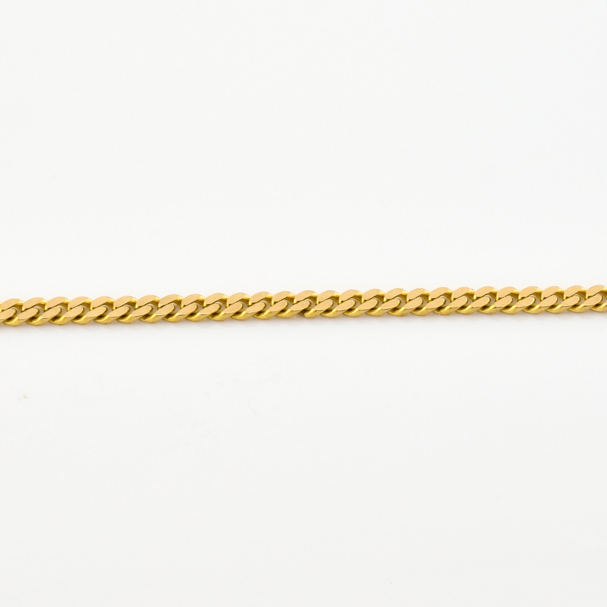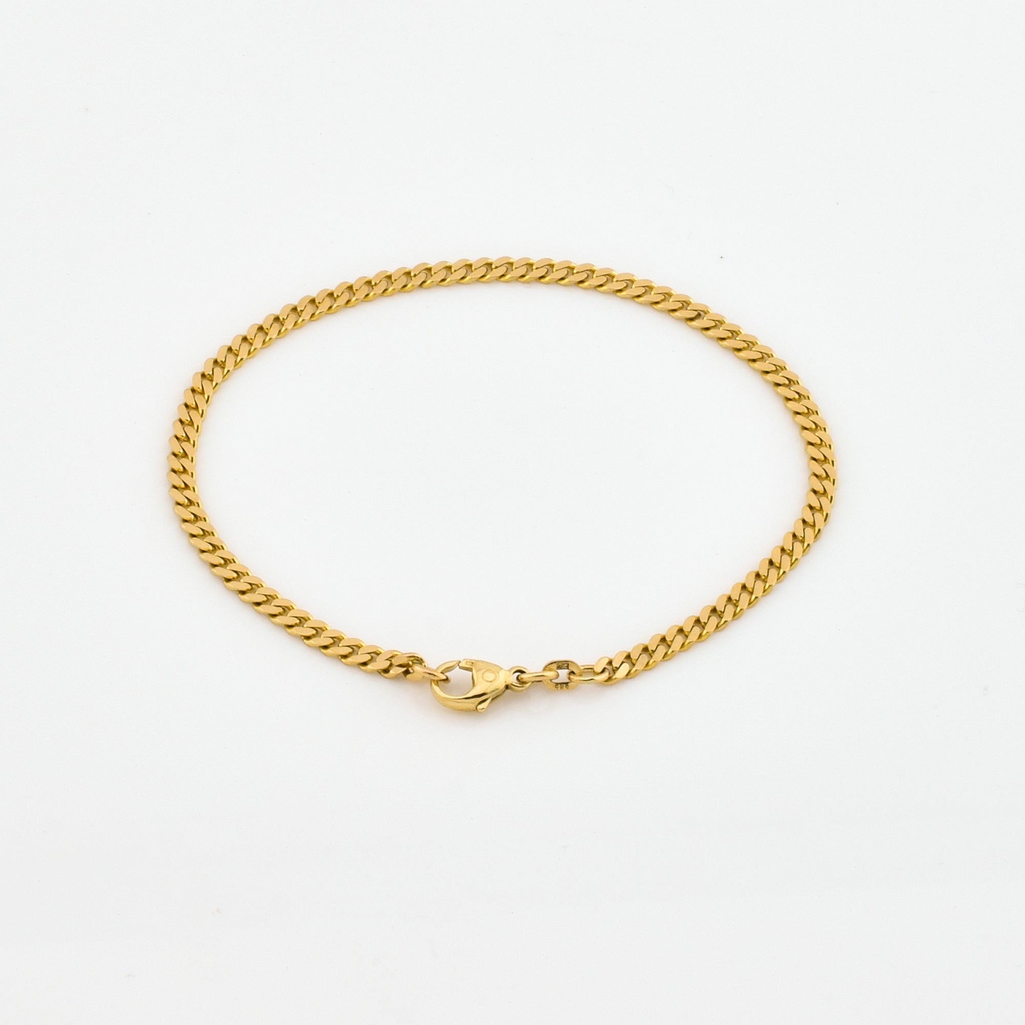 Bei dem Schmuckstück handelt es sich um ein Panzerarmband aus 585 Gelbgold. Das Schmuckstück hat eine Gesamtlänge von 21 cm.