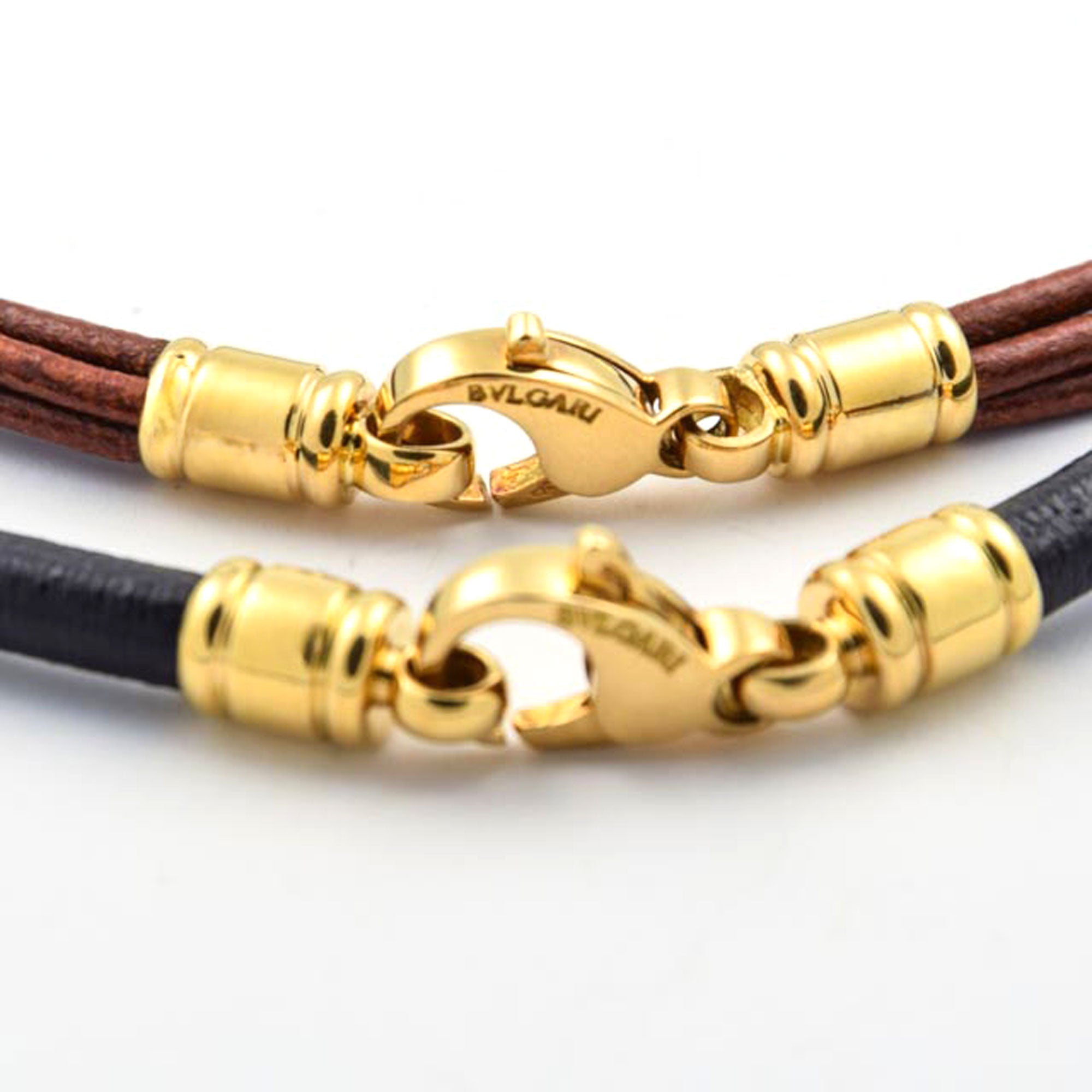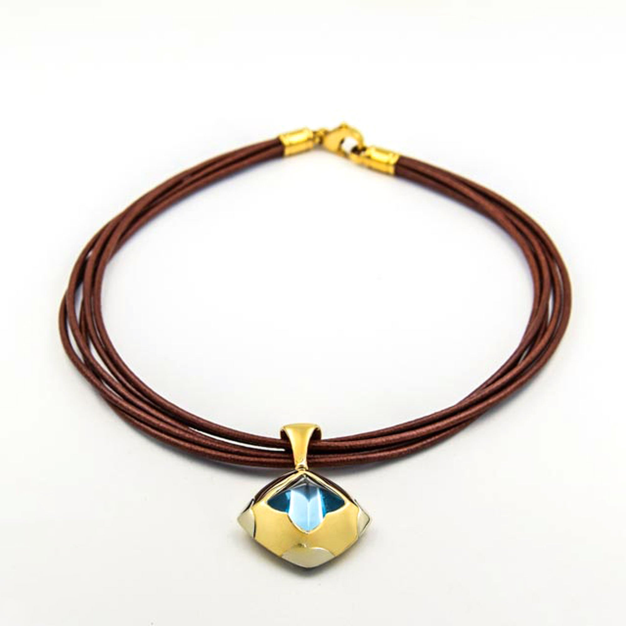 Bulgari Lederbänder mit Anhänger Pyramide aus Gelb- und Weißgold mit Topas