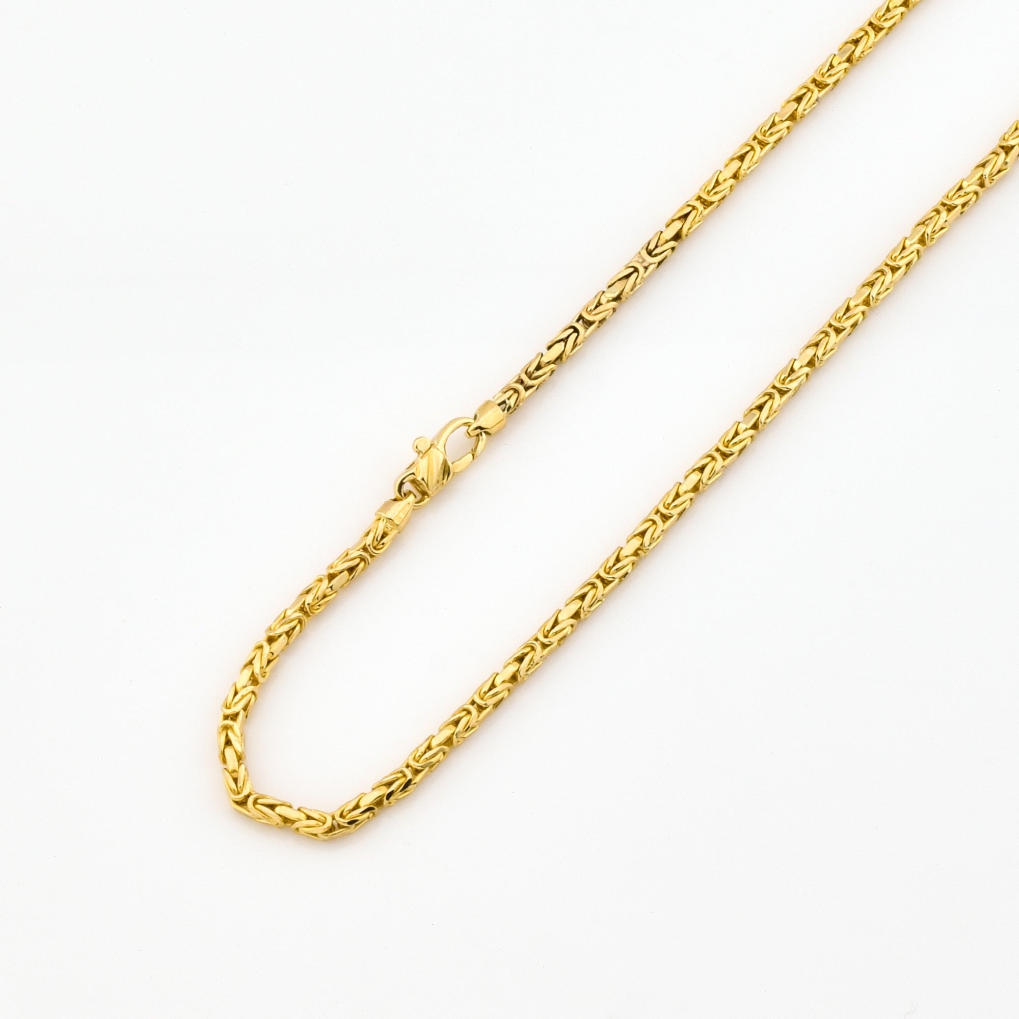 Bei dem Schmuckstück handelt es sich um eine Königskette aus 585 Gelbgold. Das Schmuckstück hat eine Gesamtlänge von 46 cm.