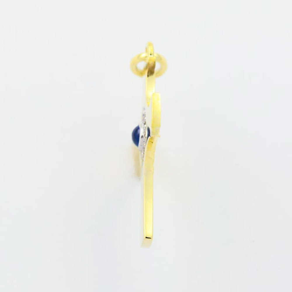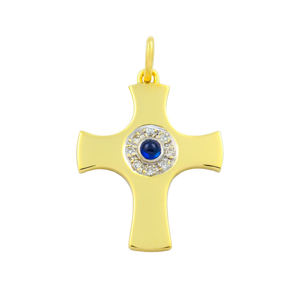 Kreuzanhänger aus Gelb- und Weißgold mit Saphir und Brillant