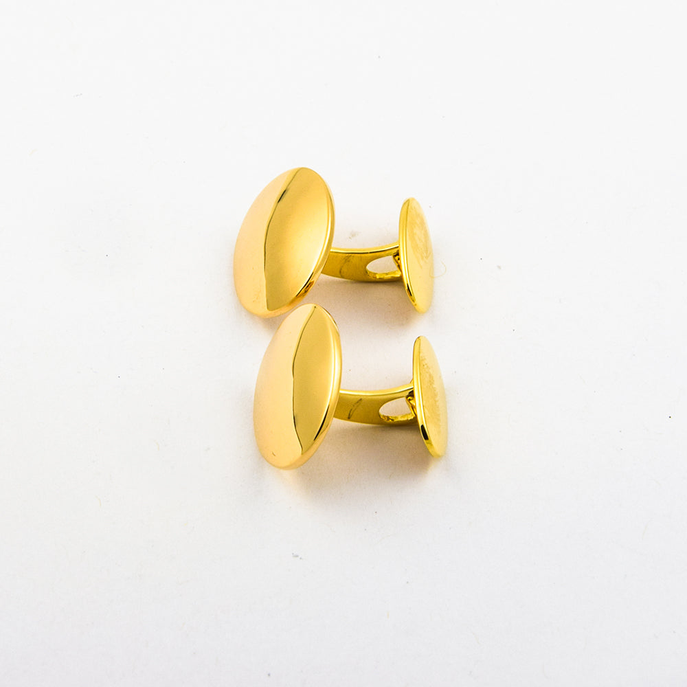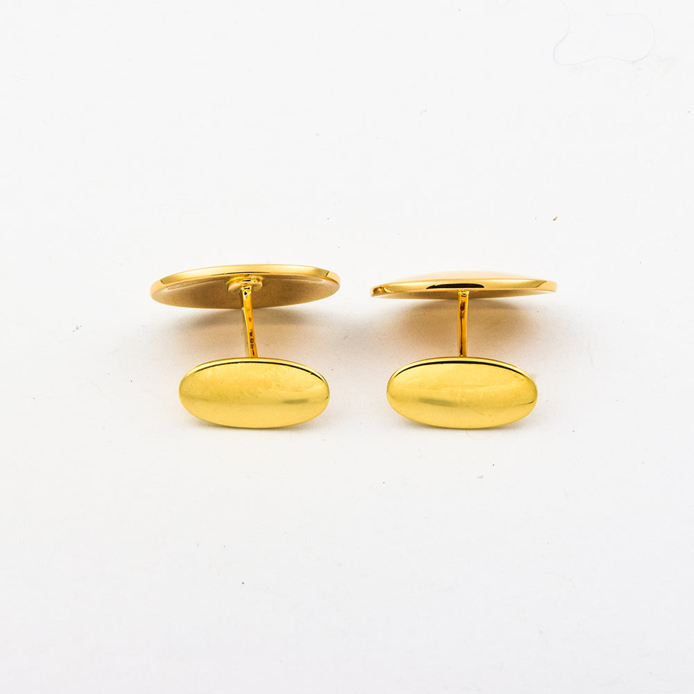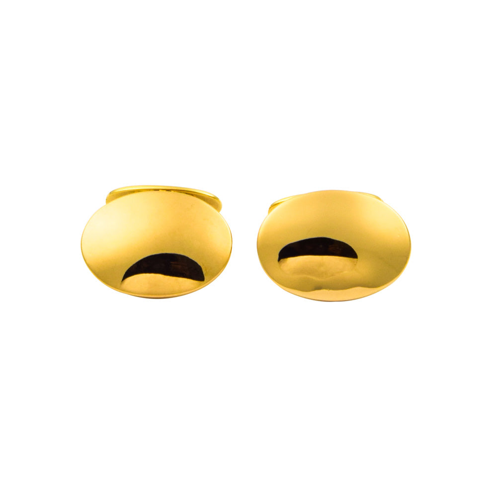 Bei dem Schmuckstück handelt es sich um ein Paar in Handarbeit gefertigte Manschettenknöpfe der Marke K. Kraemer aus 750 Gelbgold.