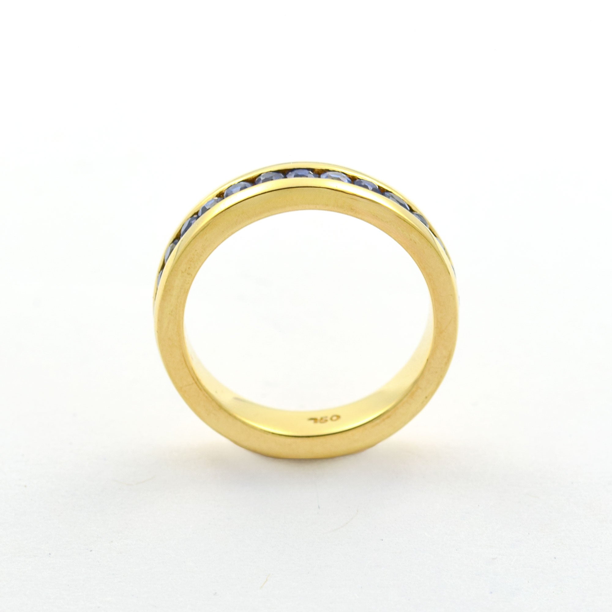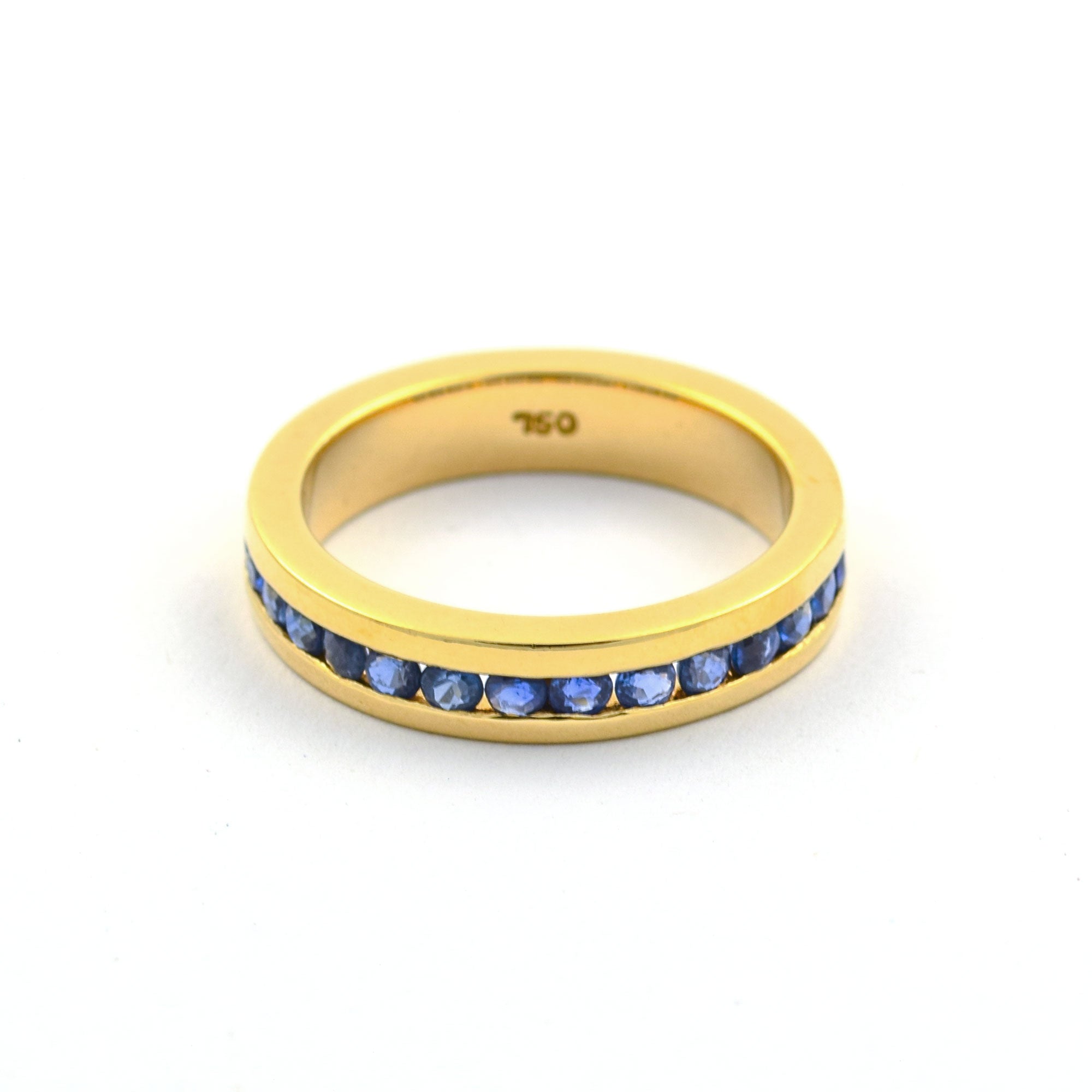 Bei dem Schmuckstück handelt es sich um einen Ring der Marke Jette Joop aus 750 Gelbgold mit 16 Saphiren.