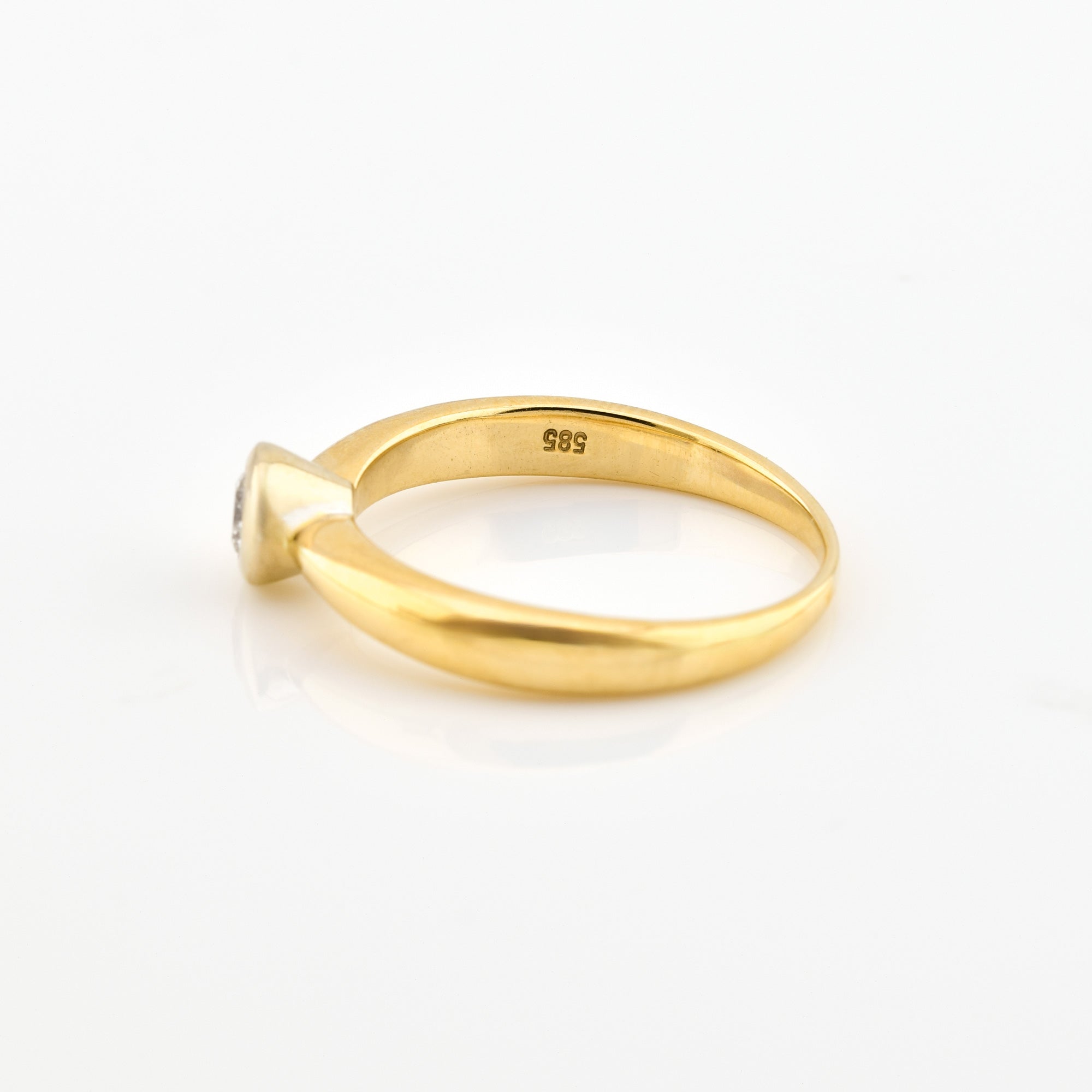 Bei dem Schmuckstück handelt es sich um einen Ring der Marke Moncara aus 585 Gelb- und Weißgold mit einem Brillanten von ca. 0,25 ct in der Qualität Weiß und lupenrein (W/lupenrein).
