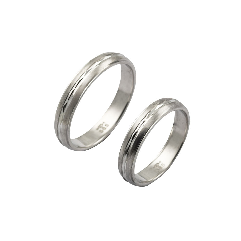 Bei dem Schmuckstück handelt es sich um ein Paar neuwertige Trauringe der Manufaktur Niessing aus 585 Weißgold.