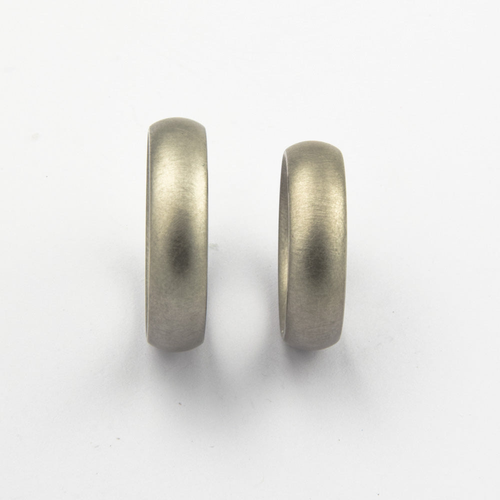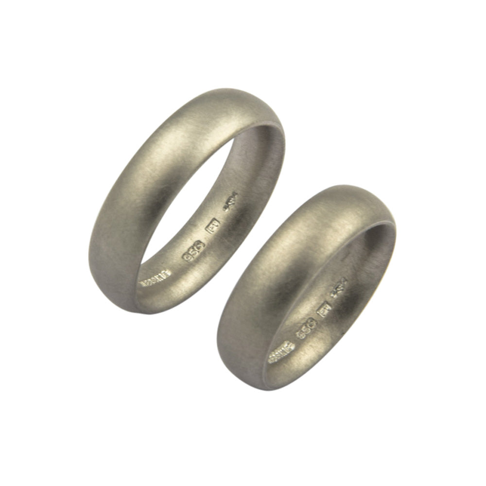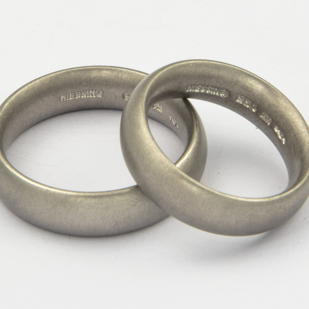 Bei dem Schmuckstück handelt es sich um ein Paar neuwertige Trauringe "Spitzoval" der Manufaktur Niessing aus 950 Platin.